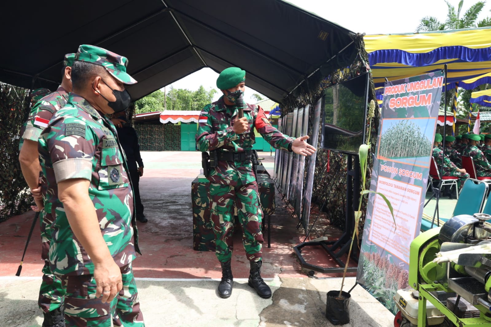 Satgas Pamtas Yonif Mekanis 643/Wns memberikan pelatihan dan edukasi tentang cara bercocok tanam Sorgum kepada masyarakat di wilayah perbatasan. Sorgum adalah tanaman serbaguna yang dapat digunakan sebagai sumber pangan, pakan ternak dan bahan baku industri.
