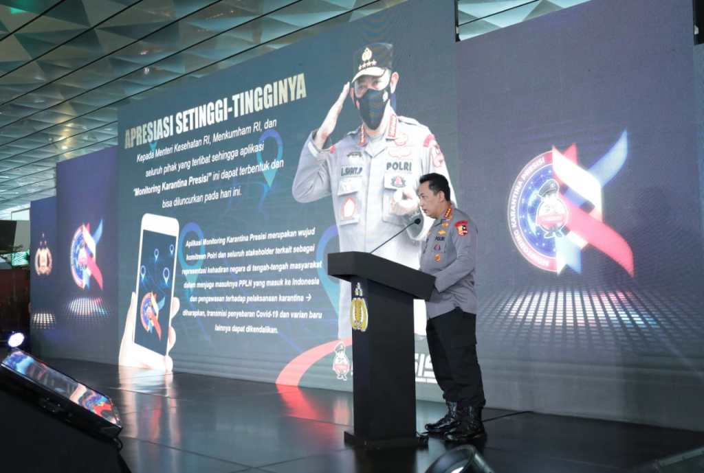 Komitmen tersebut diwujudkan oleh Kapolri, dengan meluncurkan Aplikasi Monitoring Karantina Presisi bagi pelaku perjalanan luar negeri. Platform itu merupakan komitmen dari Korps Bhayangkara yang merupakan representasi kehadiran negara untuk melindungi masyarakat dari transmisi penyebaran varian Covid-19, salah satunya adalah Omicron.