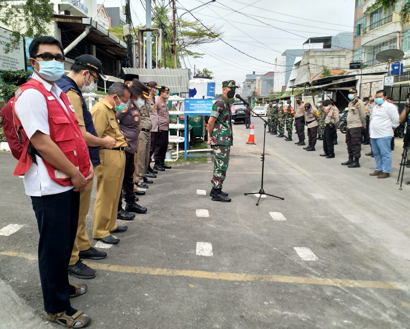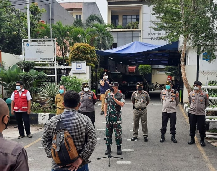 Komandan Rayon Militer (Danramil) 01/Tamansari, Kodim 0503/Jakarta Barat, Mayor Inf Zulkanaen Galib bersama tiga pilar gelar apel gabungan dalam rangka pengarahan giat Swab dan penyemprotan Cairan Desinfektan serta pelaksanaan Swab Antigen dan PCR.