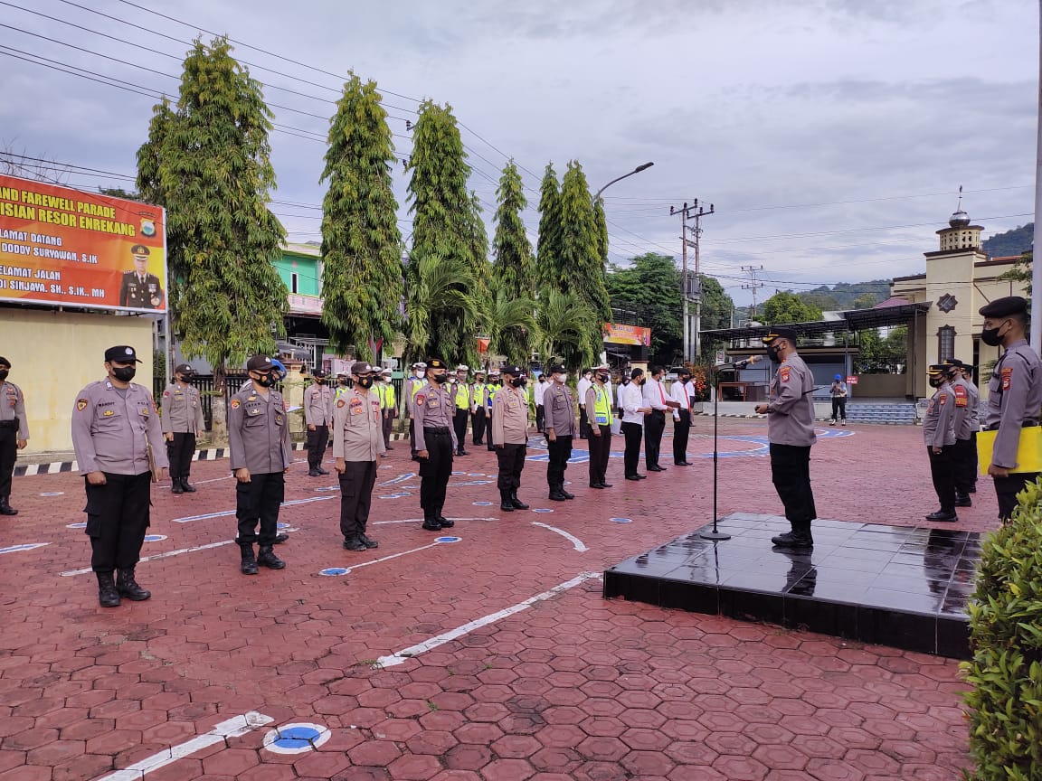 Kepala Kepolisian Resor (Kapolres) Enrekang AKBP Arief Doddy Suryawan, S.Ik pimpin apel pagi perdana di lapangan Mapolres Enrekang, Senin (10/01/21).