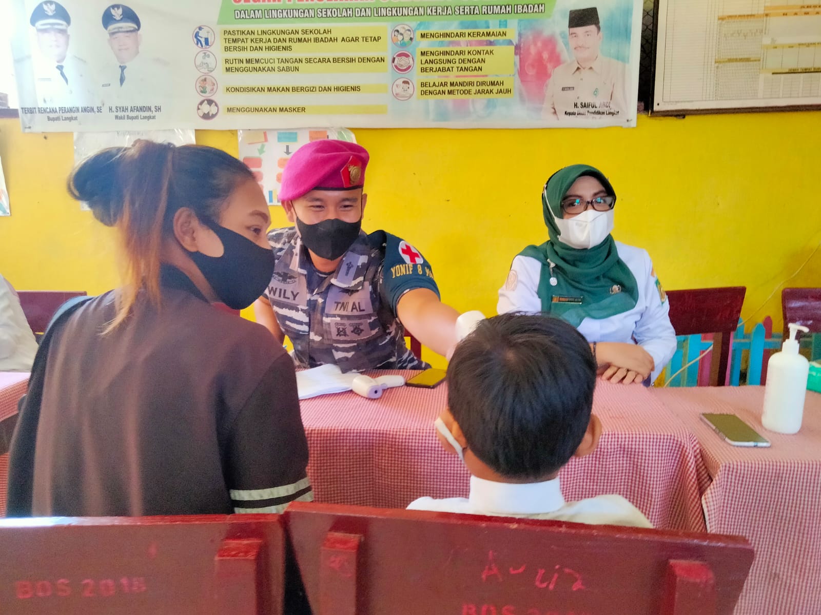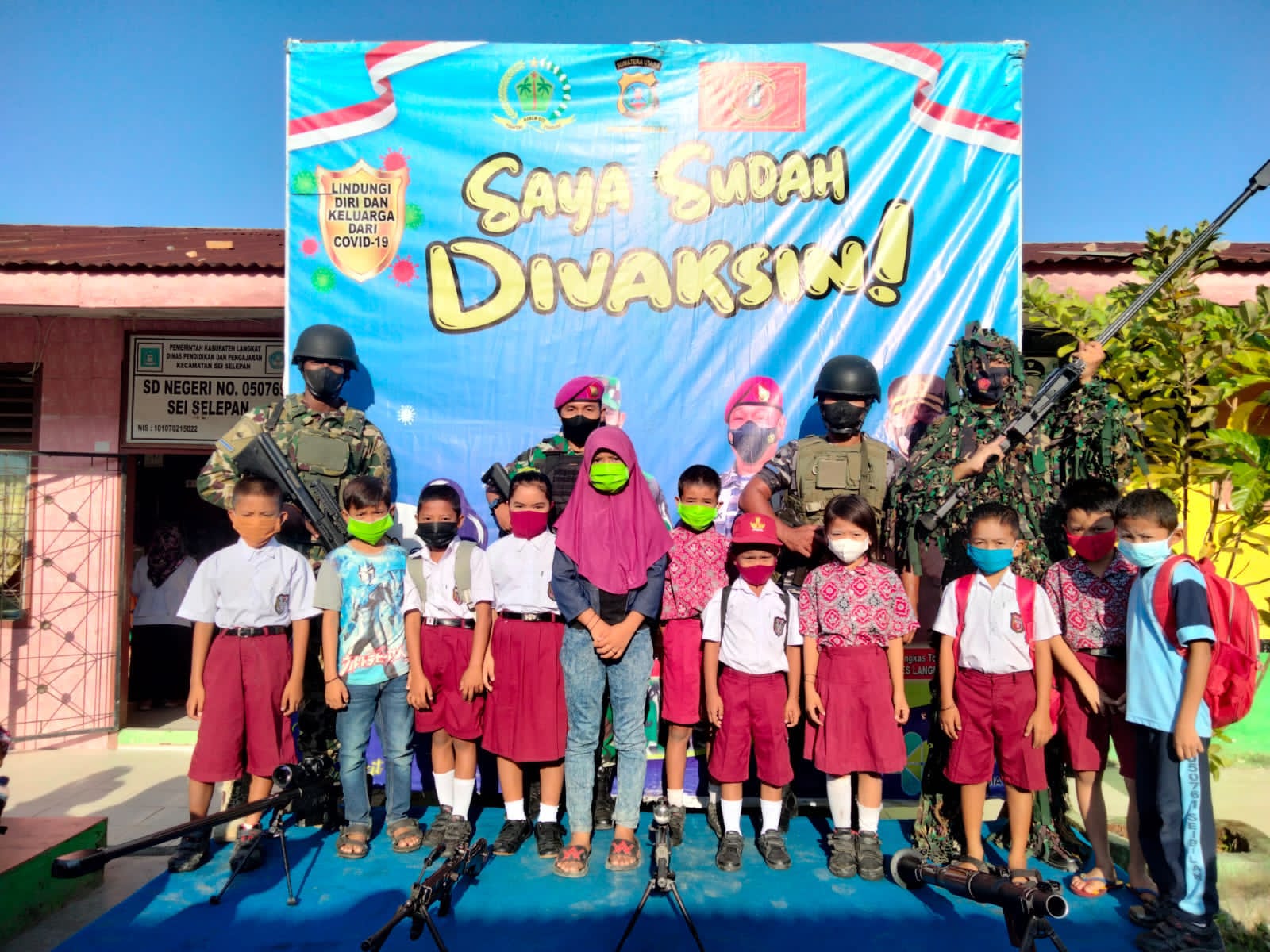 Dalam rangka percepatan penanganan Covid-19, Yonif 8 Marinir yang dipimpin oleh Letda Laut (K) Wily Tamara Farobbi bersama Puskesmas Sei Lepan kembali menggelar serbuan vaksin massal untuk anak usia 6 – 12 tahun di SDN 050761 Sei Bilah, Kec. Sei Lepan Kab. Langkat, Sumatera Utara. Rabu (12/01/2022).