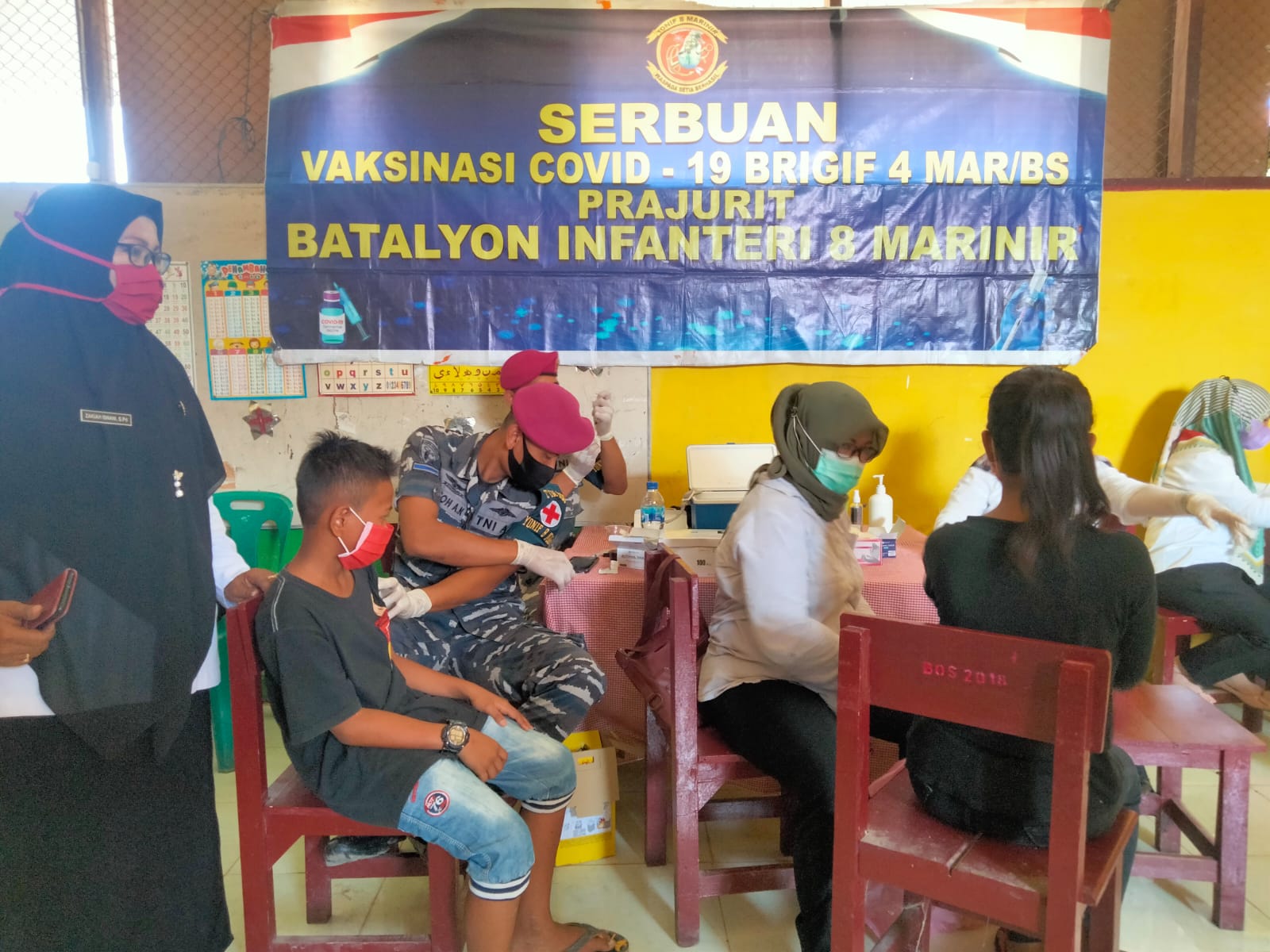 Demi mencegah penyebaran wabah Covid-19, pemerintah semakin gencar melaksanakan vaksinasi, belum lama ini vaksinasi untuk anak usia 6 – 12 tahun telah resmi diberlakukan. Dalam hal ini, Yonif 8 Marinir bersinergi bersama mendukung untuk mensukseskan program pemerintah tersebut.