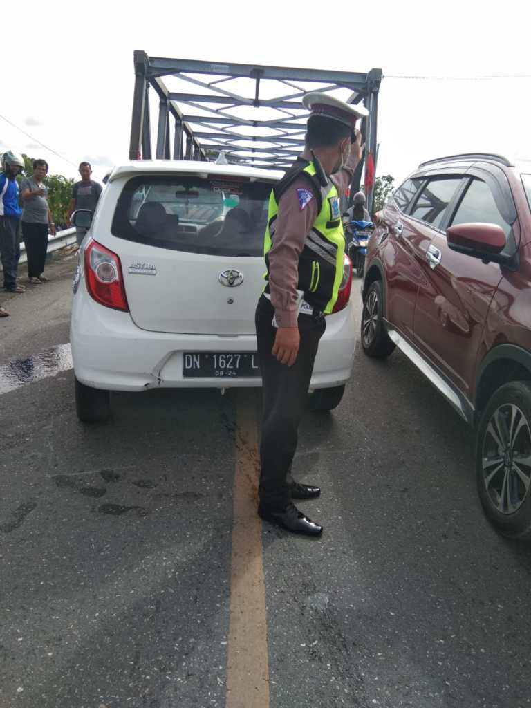 menurut saksi di tkp bahwa kendaraan yang di kendarai YL (58) melintas dari arah barat jalan Sultan Hasanudin menuju pusat Kota, kemudian mobil Toyota starlet yang dikendarai ZE (63) dari arah berlawanan menuju jalan Sultan Hasanudin, tiba tiba dari arah jalan Tadulako muncul kendaraan minibus langsung menabrak mobil agya tersebut dan mengakibatkan sopir agya hilang kendali langsung menabrak mobil Toyota Starlet. Kejadian laka lantas ini langsung ditangani oleh Satlantas yang dipimpin langsung oleh Kanit Laka Polres Tojo una -una dengan melakukan olah tkp.
