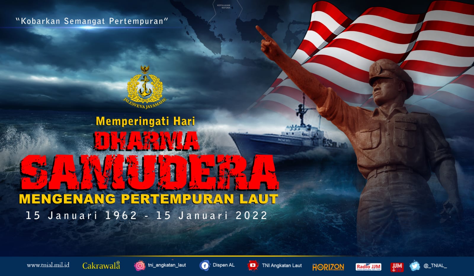 Sekilas balik Hari Dharma Samudera, Hari Dharma Samudera merupakan peringatan bersejarah khususnya TNI Angkatan Laut Indonesia mengenang Pertempuran Patriotik tiga Kapal Perang RI diwawah komando Komodor Yos Sudarso di Laut Aru saat perebutan Irian Barat. Dengan persenjataan yang tidak seimbang pada saat itu, Ketiga Kapal Perang RI tertembak oleh Kapal Perang Belanda dan tenggelam, Komodor Yos Sudarso, juga seluruh ABK pun ikut Gugur Sebagai Pahlawan Kusuma Bangsa.