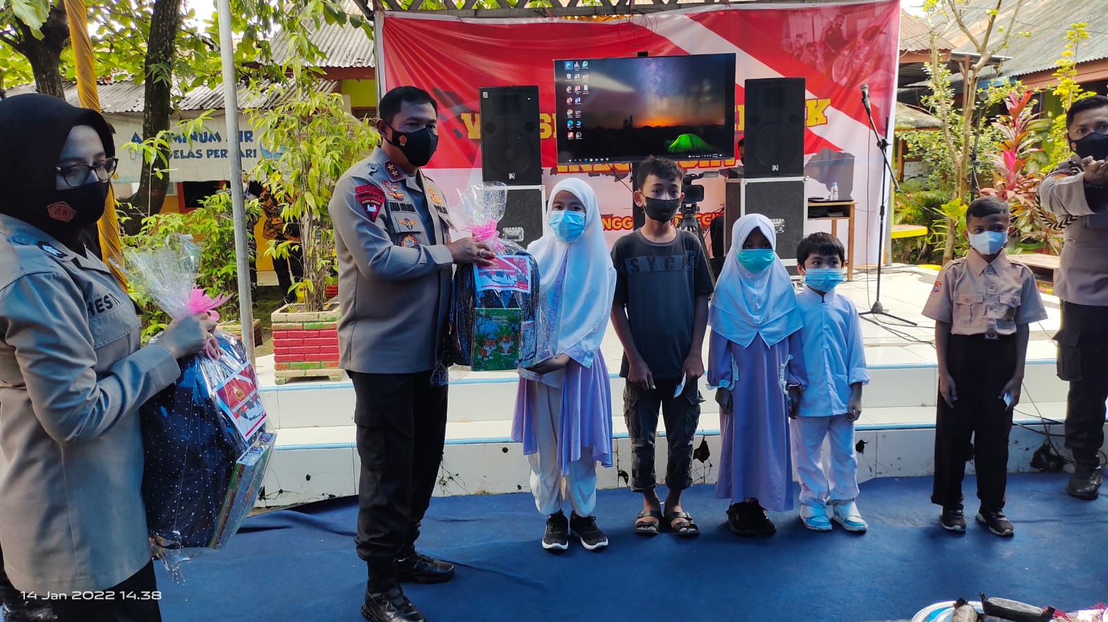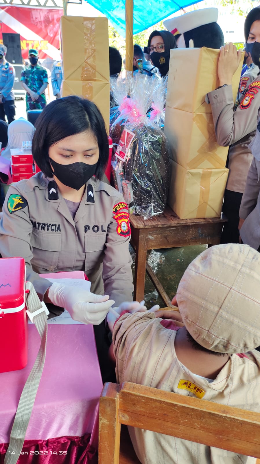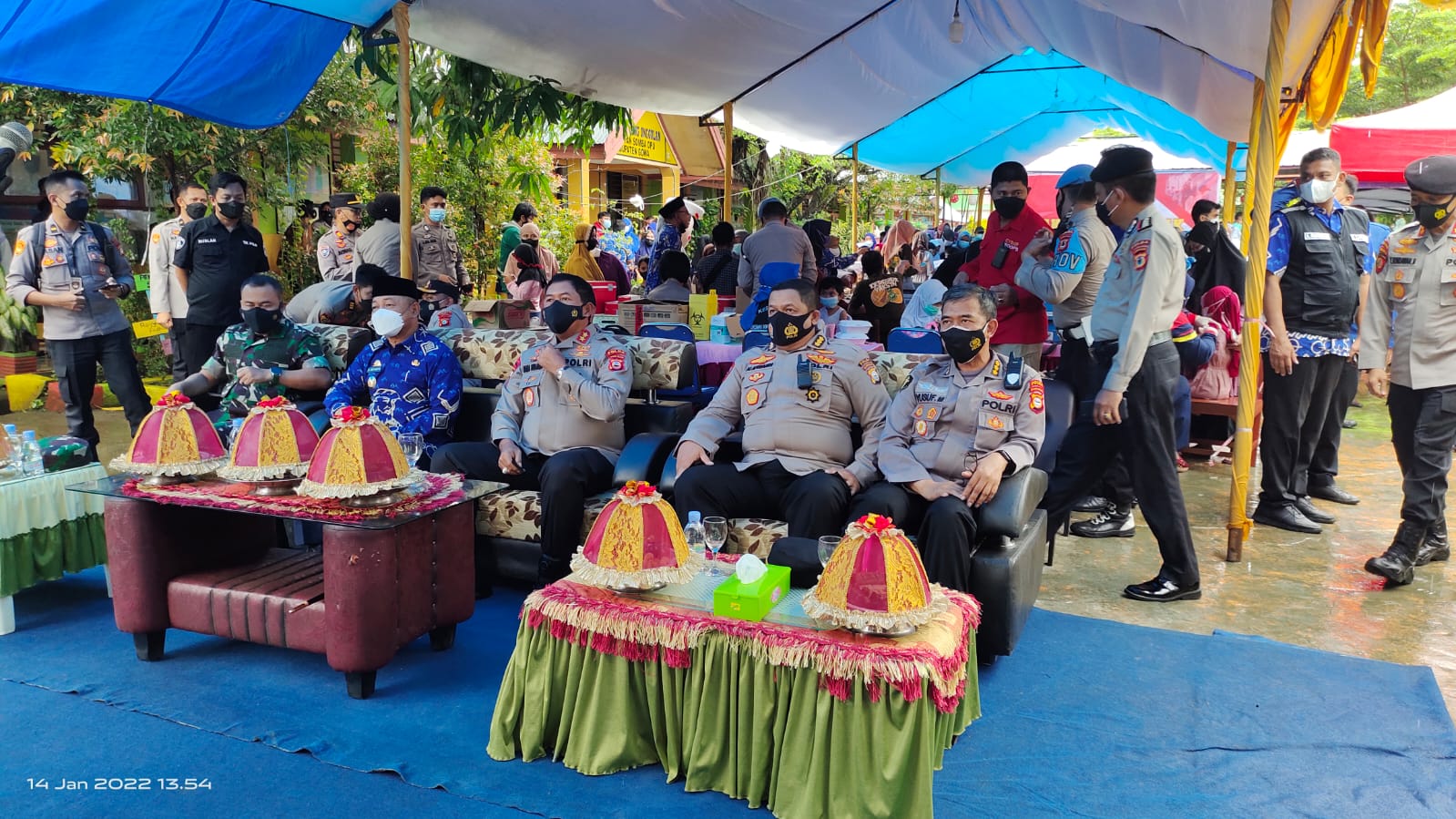 Yang menarik dalam kegiatan vaksinasi serentak tersebut di mana Kapolda Sulsel dan beberapa pejabat memberikan bingkisan kepada anak-anak yang telah mengikuti vaksinasi dan warga tak mampu.
