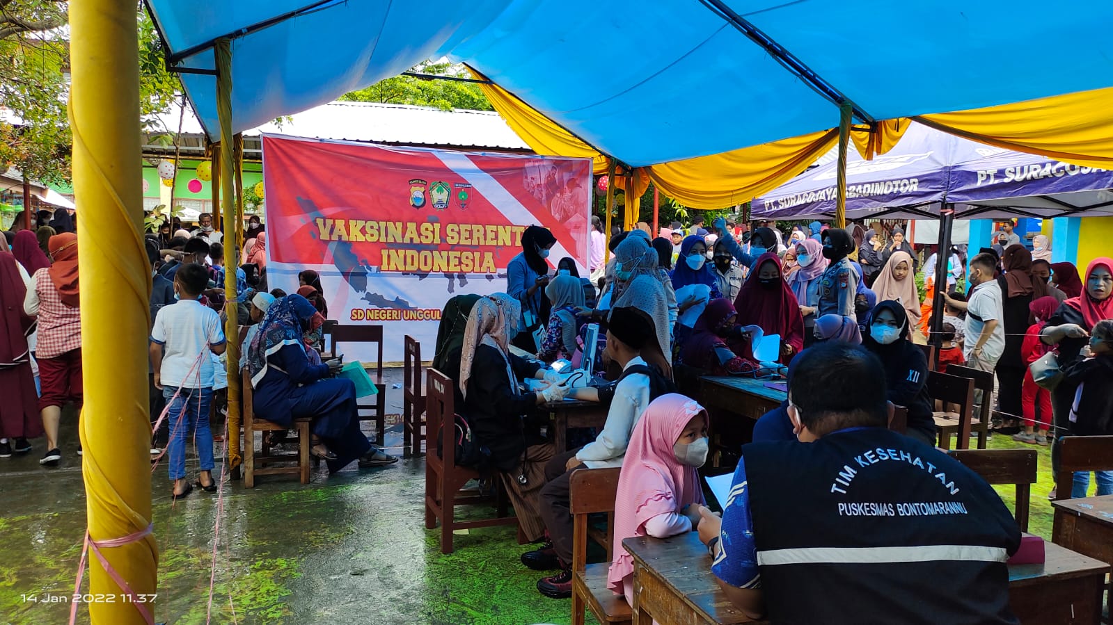 Kegiatan vaksinasi yang digelar di SDN Pacinongan kecamatan Somba Opu kabupaten Gowa tersebut menjadi salah satu lokasi kunjungan bapak Kapolda Sulsel dalam rangka akselerasi vaksinasi yang digelar Polda Sulsel bekerjasama dengan Pemda Gowa serta Polres Gowa yang dilakukan secara serentak oleh Polri hari ini Jumat (14/1/2022).