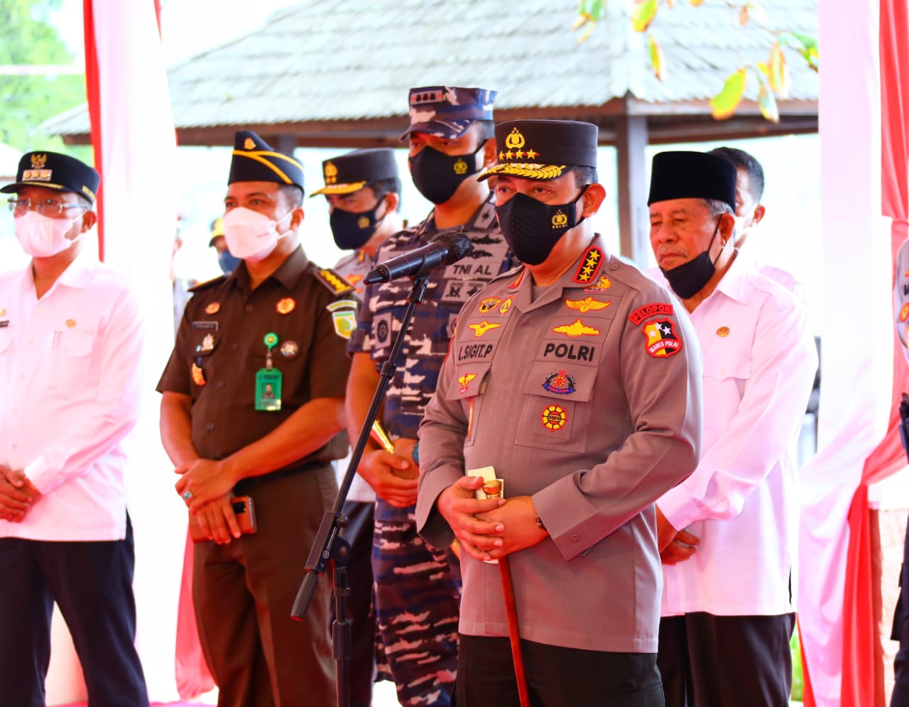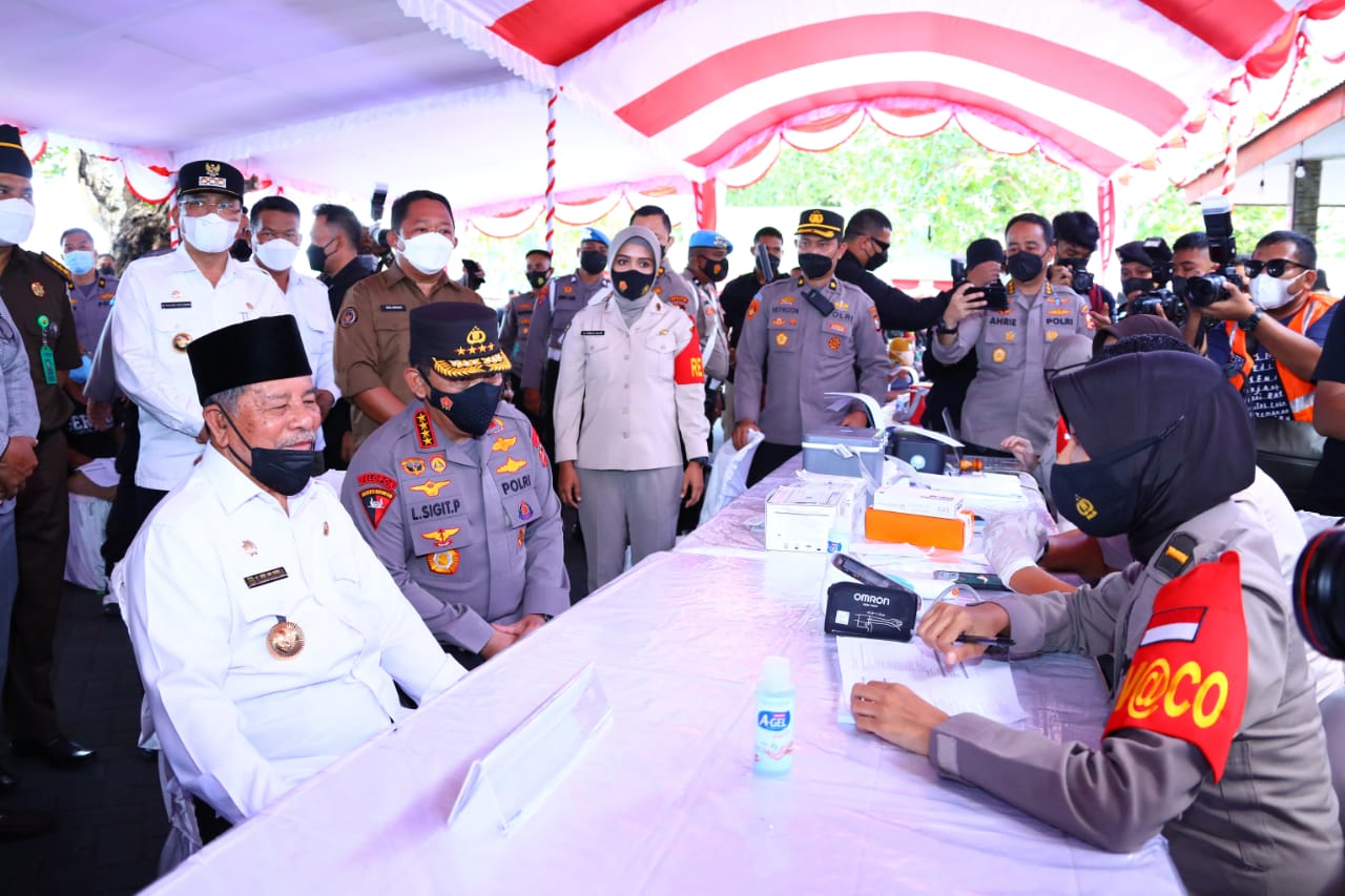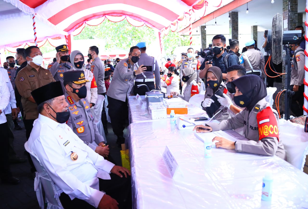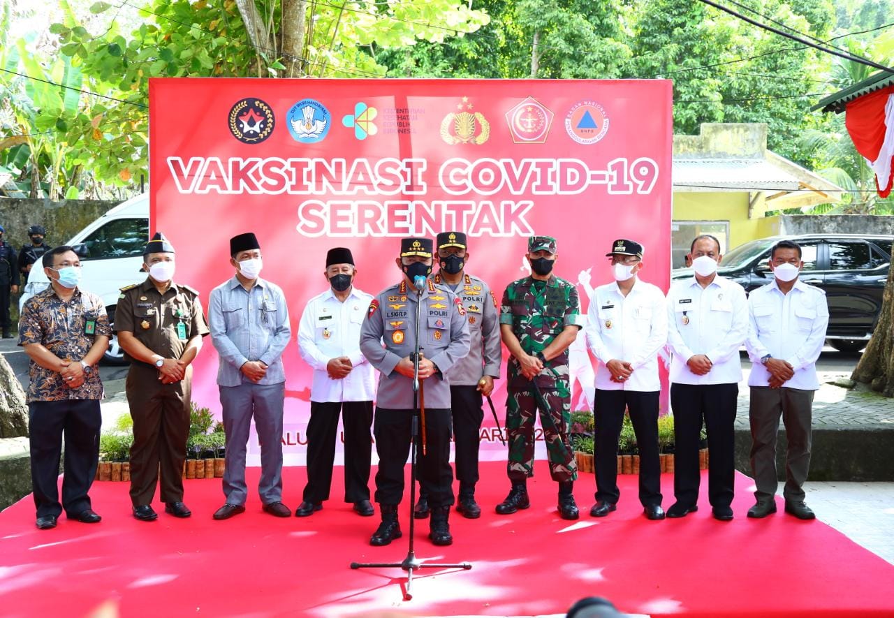 Kapolri Jenderal Listyo Sigit Prabowo meninjau akselerasi percepatan vaksinasi Covid-19 yang digelar di 34 Provinsi Indonesia dengan menghadiri secara langsung di Pantai Sulamadaha, Kota Ternate, Maluku Utara, Jumat (14/1/2022).