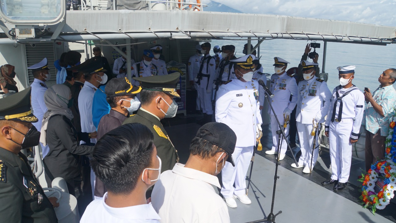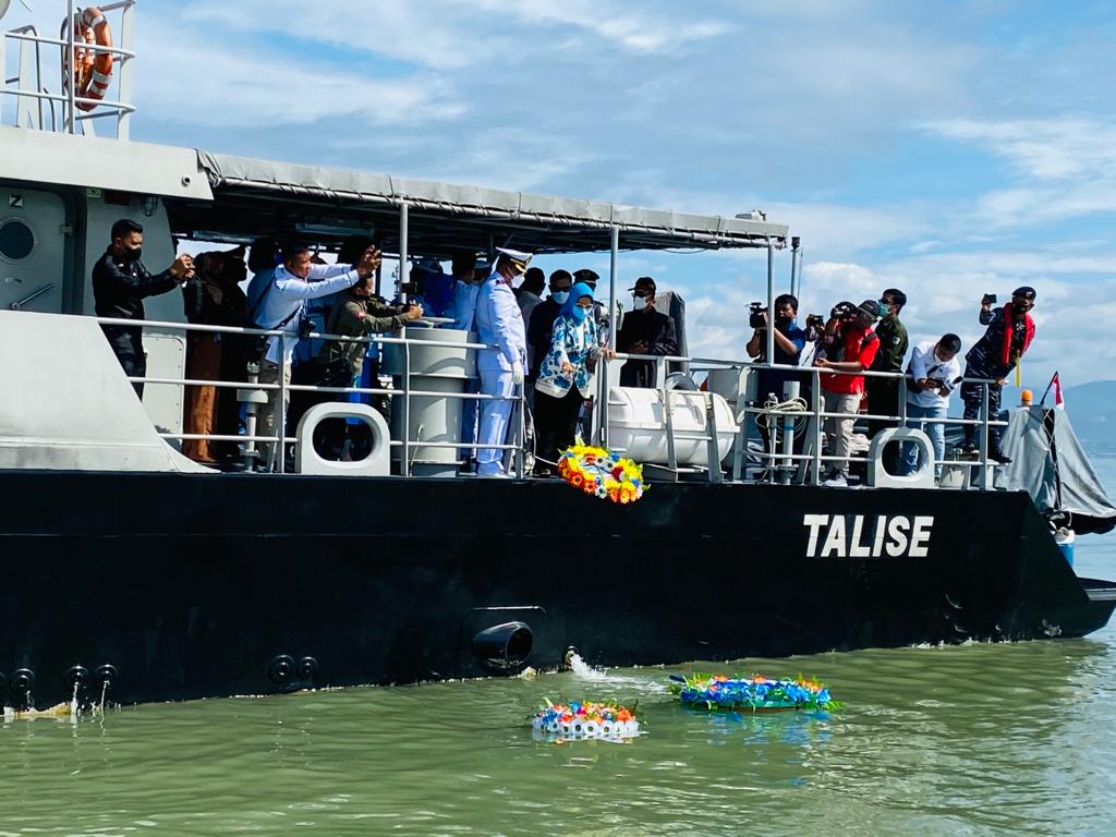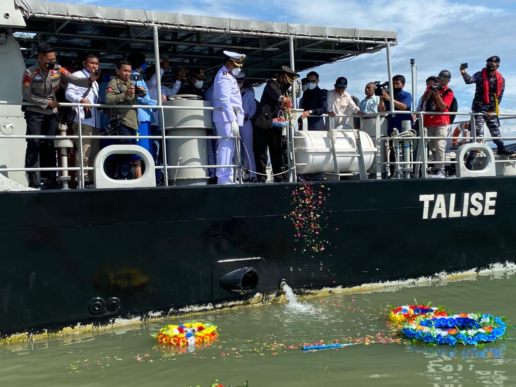 Setelah pelaksanaan upacara di dermaga, disisi Dermaga pun telah siap Kapal Angkatan Laut (Kal) Talise, Patkamla Katio, Kapal Bea Cukai, dan dua buah Sea Rider Basarnas untuk melanjutkan kegiatan yang telah direncanakan yaitu Upacara Tabur Bunga di Laut dalam rangka memperingari Hari Dharma Samudera.