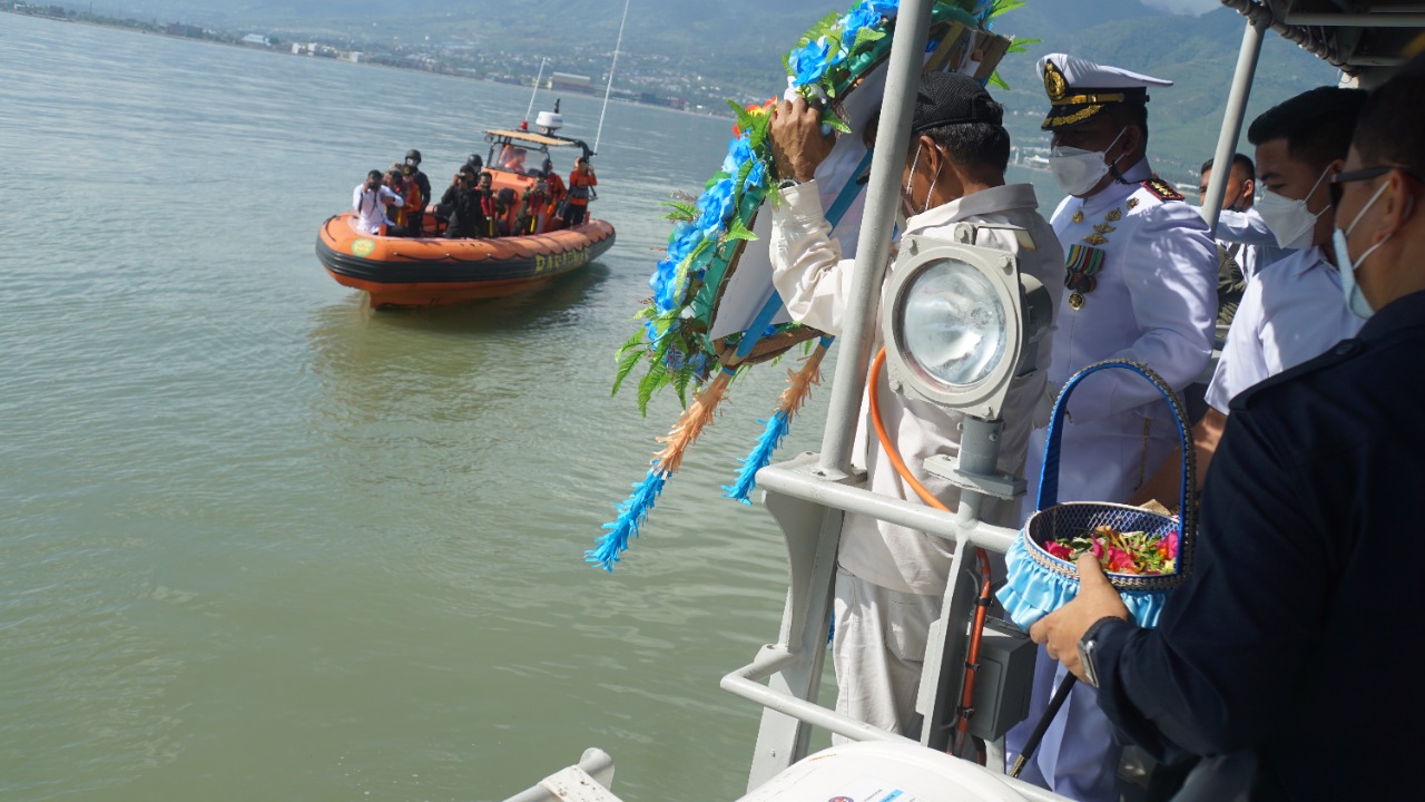 Tepat pukul 09.00 Wita, Gubernur Sulteng didampingi Komandan Lanal Palu dan Undangan dari tenda transit menuju dermaga untuk Onboard di Kal Talise, selanjutnya beberapa saat kemudian Kal Talise berangkat berlayar di teluk Palu menuju titik koordinat untuk melaksanakan Upacara Tabur Bunga. Setiba di Koordinat yang tlah direncanakan, dari atas deck Buritan Kal Talise kembali dilaksanakan upacara dengan Inspektur Upacara Komandan Lanal Palu sedangkan sekalu Komandan Upacara Dandenpomal Lanal Palu Mayor Laut (PM) M. SUlton. Pada rangkaian upacara, dibacakan amanat dari Kepala Staf TNI AL, pembacaan sejarah singkat Hari Dharma Samudera mengenang pertempuran di laut aru yang menyebabkan tenggelamnya KRI Macan Tutul dan gugurnya Komodor Yos Sudarso bersama ABK KRI Macan Tutul juga penghormatan kepada Arwah Pahlawan.