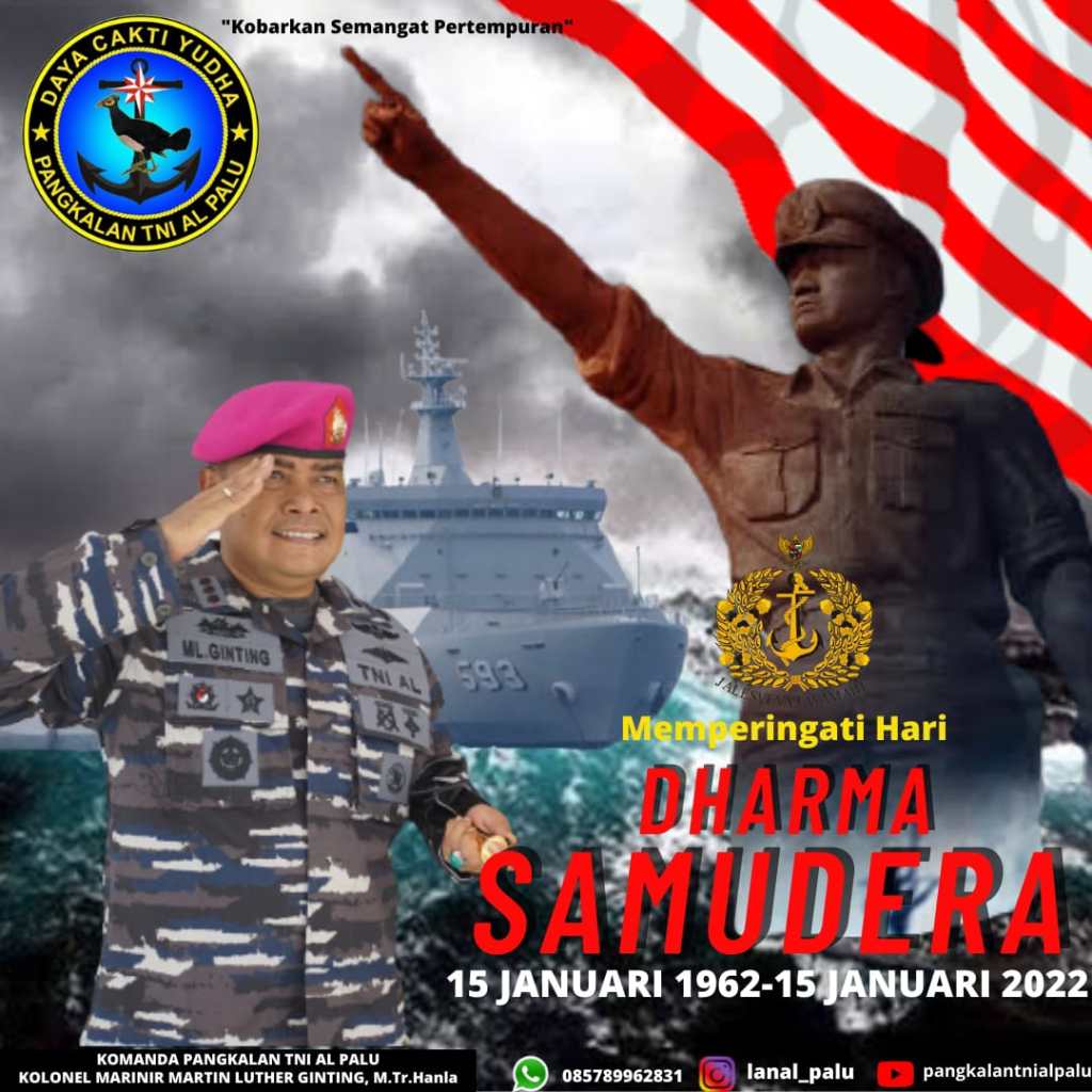 Sesaat kemudian usai pelaksanaan apel pagi, di dermaga Lanal Palu dilaksanakan Upacara Hari Dharma Samudera dengan Inspektur Upacara Komandan Lanal Palu Kolonel Marinir Marthin Luther Ginting, M.Tr.Hanla dengan dihadiri oleh seluruh Perwira Staf, Prajurit dan PNS Lanal Palu.