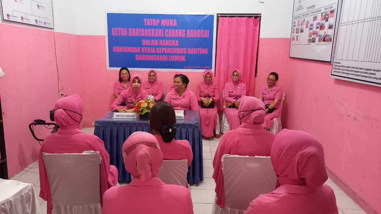 Bertempat di aula Polsek Luwuk, senin (17/1/2022), ketua Bhayangkari cabang Banggai Ny Ria Yoga, mengatakan, selama pandemi ini bhyangkari itu jarang ada kegiatan setelah pandemi itu sudah mulai agak kurang jadi kita sudah mulai ada kegiatan, sedangkan Bhayangkari itu juga harus update, terang ketua bhayangkari