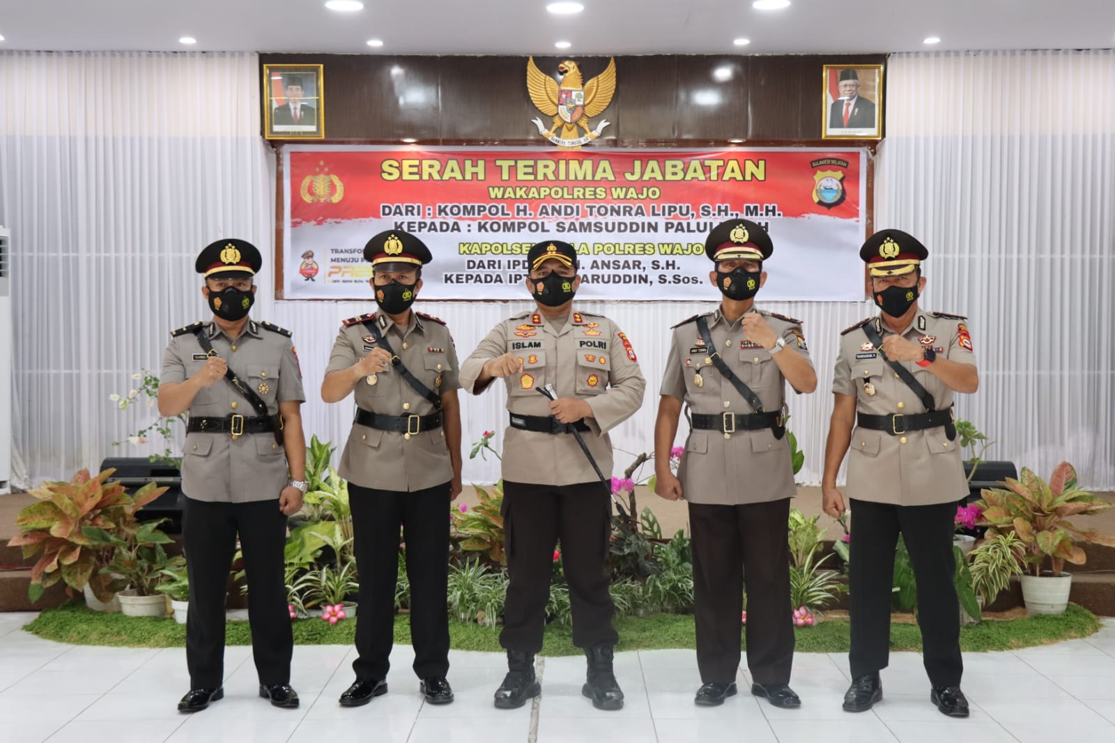 Kapolres Wajo memberikan ucapan selamat bertugas kepada KOMPOL H. A. TONRA LIPU, SH. MH ditempat yang baru sebagai Waka Polres Luwu Utara dan selamat bargabung kepada KOMPOL SYAMSUDDIN PALULU, SH sebagai Waka Polres Wajo semoga cepat menyesuaikan dipolres wajo.