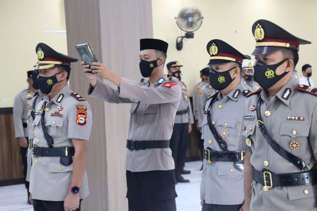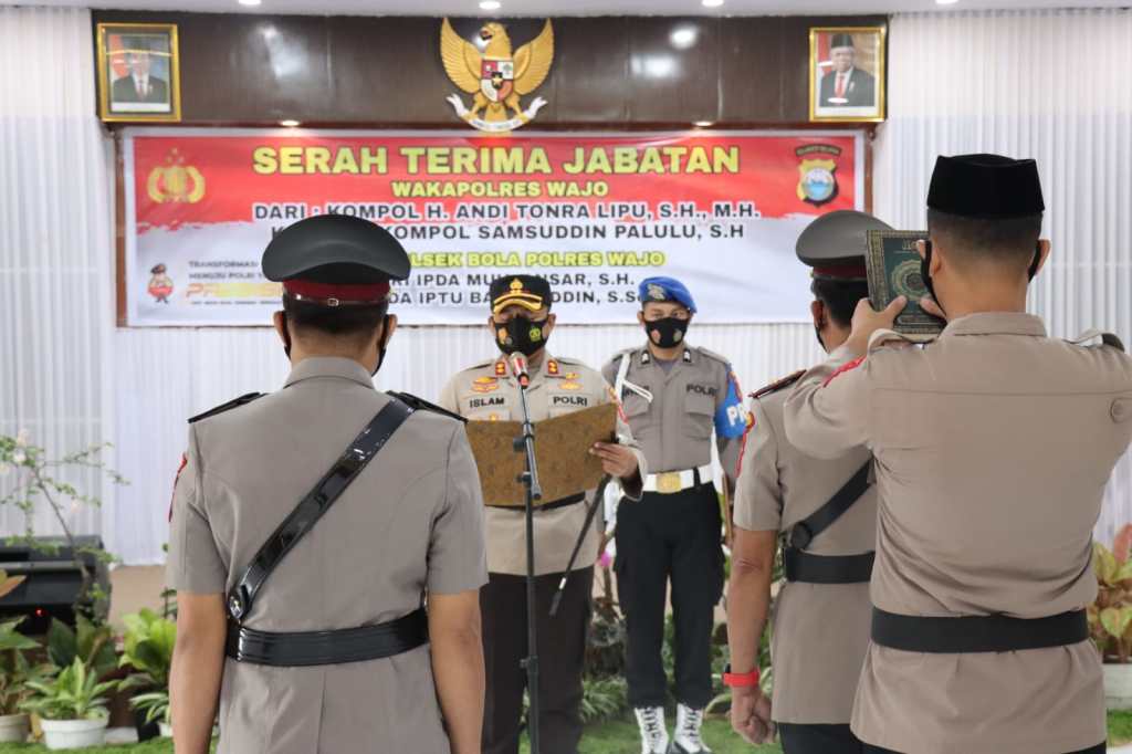 Selain itu para pejabat yang baru mengucapkan sumpah jabatan dihadapan Kapolres Wajo disaksikan oleh rohaniwan dan seluruh peserta upacara.