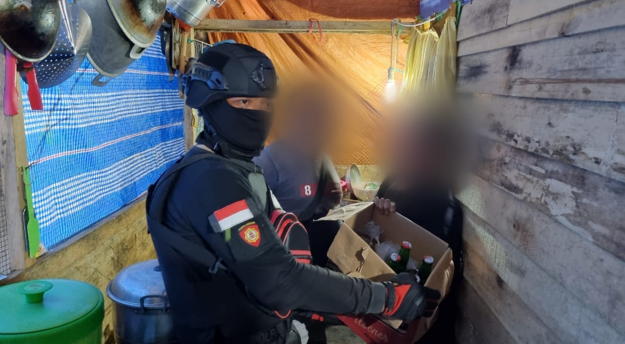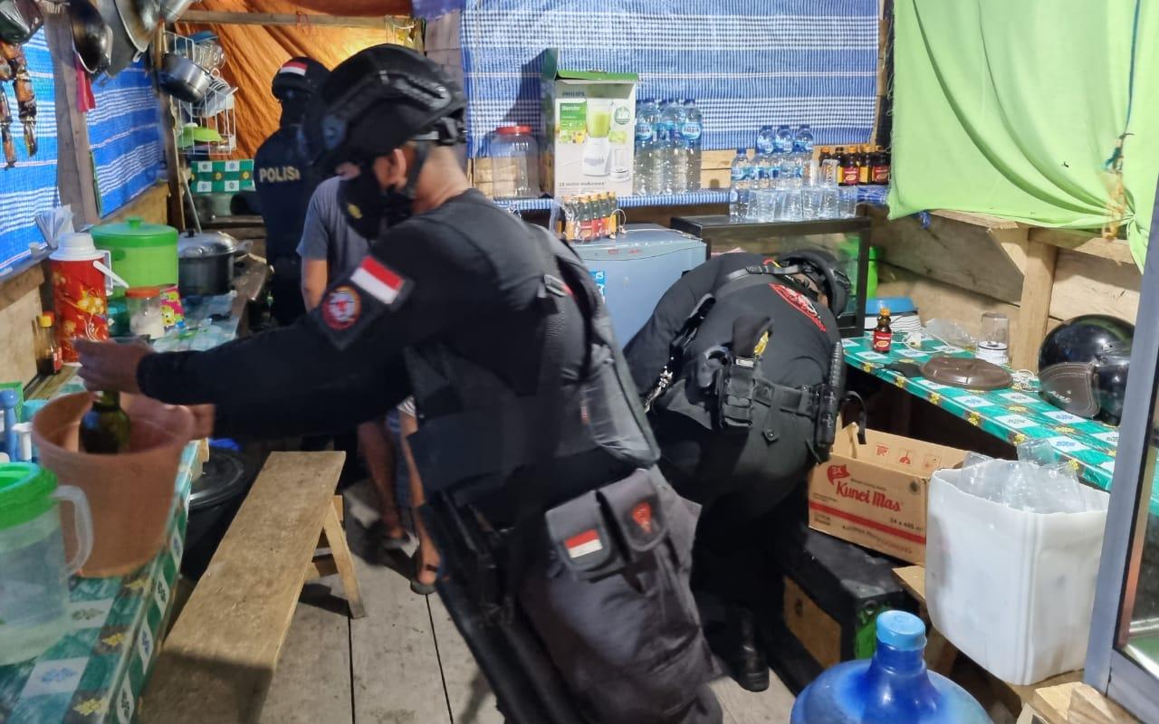 Tim Tarantula Satuan Sabhara Polres Banggai menggerebek sejumlah kios yang diduga menjual minuman keras (miras) di wilayah Kota Luwuk, Kabupaten Banggai, Sabtu (16/1/2022).