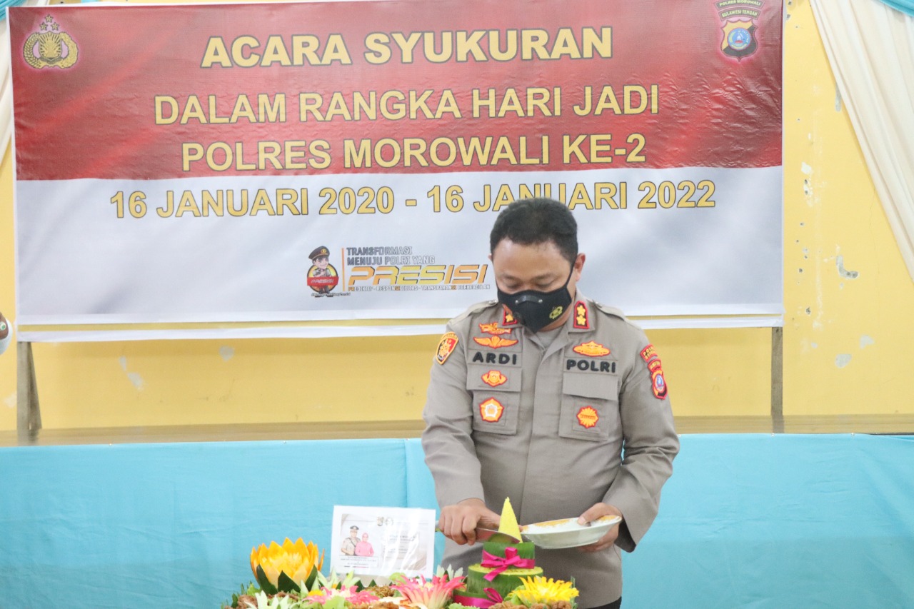 Kegiatan syukuran hari jadi ke 2 tersebut di pimpin langsung Kapolres Morowali AKBP Ardi Rahananto S.E S.I.K M.Si di saksikan Wakapolres Morowali,Beserta para pejabat utama polres Morowali , dan jajaran anggota polres .
