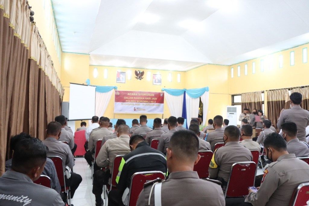 Kegiatan syukuran hari jadi yang ke 2 polres Morowali tanggal 17 Januari 2022 pukul 15-30 wita, bertempat di aula polres Morowali .
