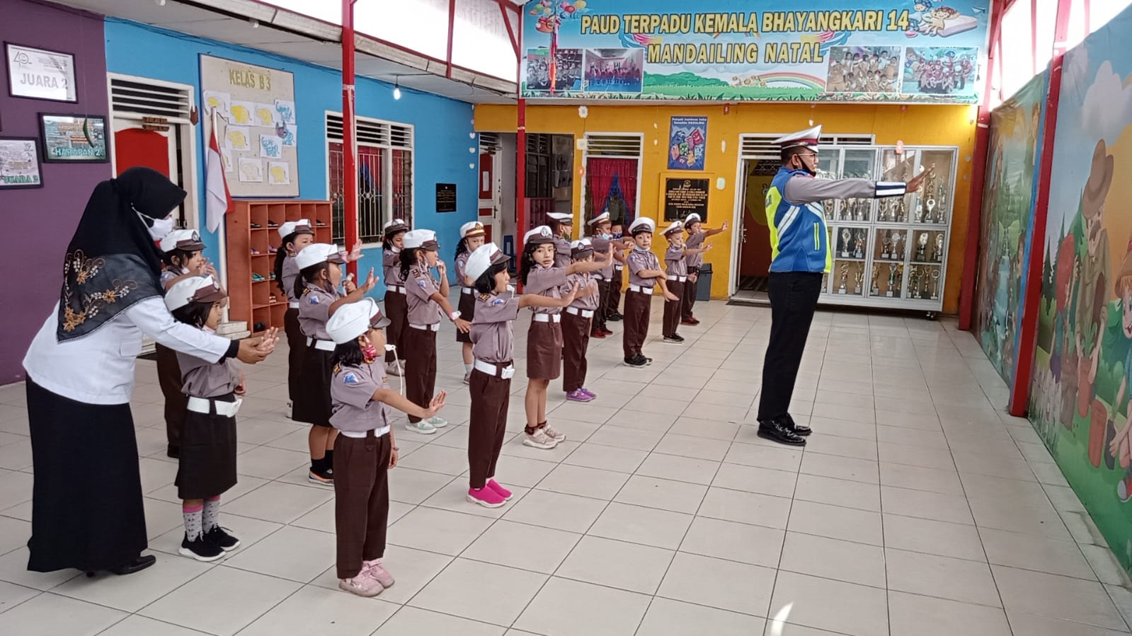 Kapolres Madina AKBP H.M. Reza Chairul, A.S, S.I.K, S.H, M.H melalui personil satuan lalu lintas Polres Madina dibawah pimpinan AKP Syamsul Arifin Batubara, S.E, M.Si Melaksanakan Kegiatan “Polisi Sahabat Anak” di Paud Kemala Bhayangkari 14 Panyabungan, Rabu 19/01/2022 sekira pukul 09.00 Wib.