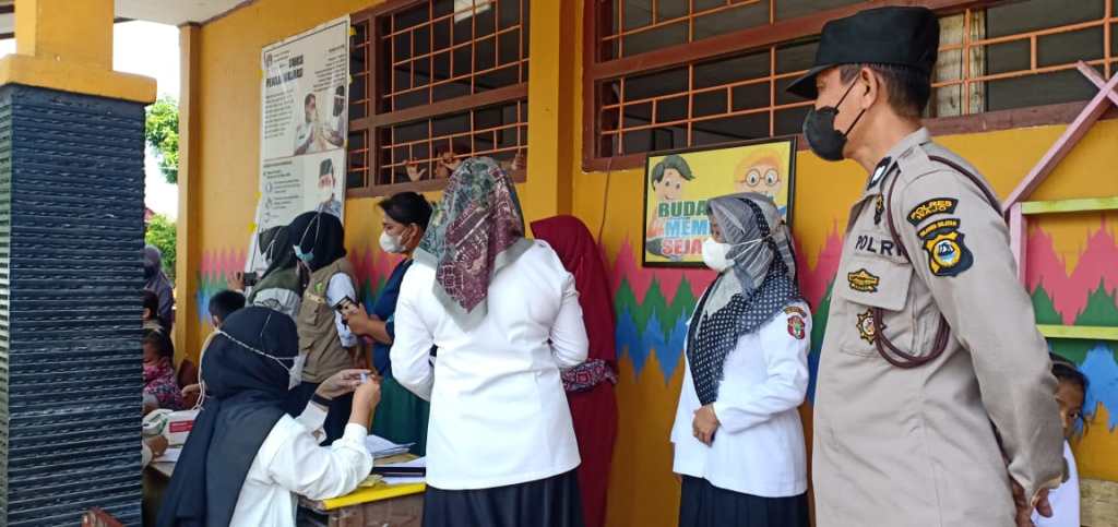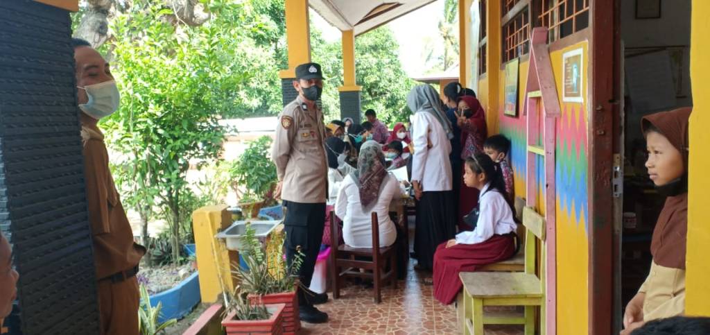 Dalam kegiatan monitoring tersebut, Kanit Binmas Muh Rusdi menyampaikan kegiatan Vaksinasi Anak usia 6 – 11 tahun secara terus menerus dan berkesinambungan. Hal ini dilakukan untuk mendukung program pemerintah dalam rangka percepatan capaian vaksinasi Nasional yang digelar di seluruh wilayah Indonesia.