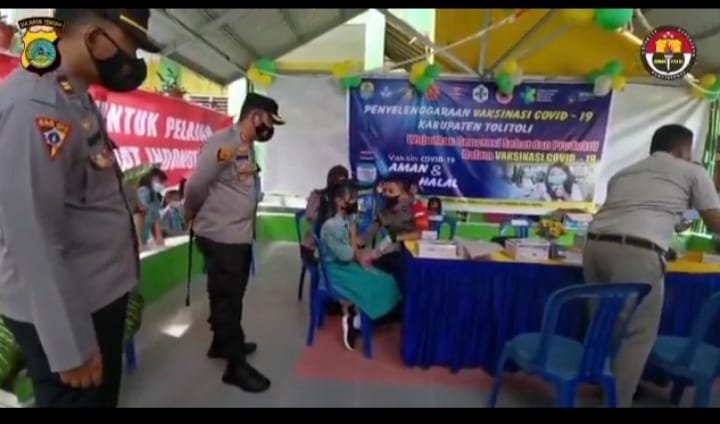 Kapolres Toli- Toli AKBP Budhi Batara Pratidina,SH.S.I.K. M.H di dampangi beberapa pejabat utama polres toli- toli Tinjau langsung pelaksanaan vaksinasi anak usia 6 sampai dengan 11 tahun dengan persetujuan orang tua. (Rabu 19/1/2022 )