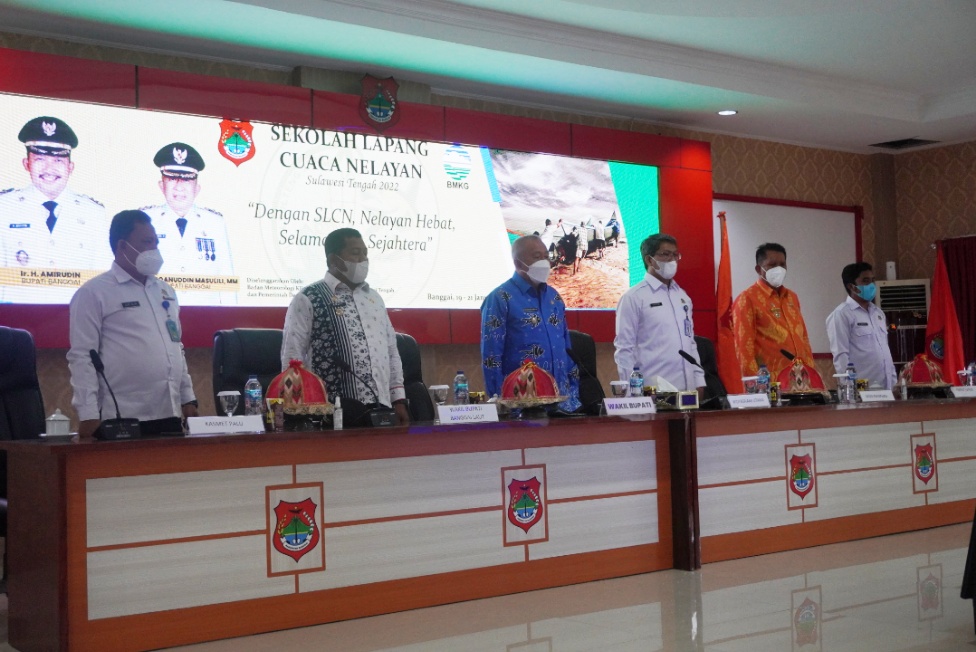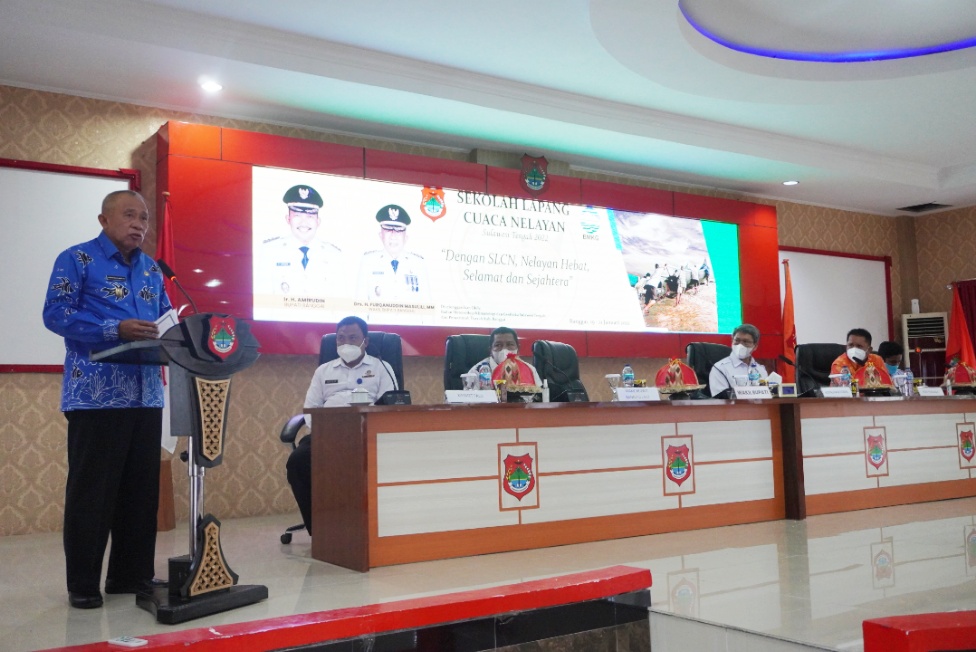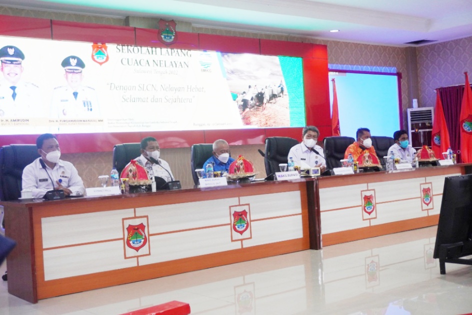Giat Bupati Banggai Ir. H. Amirudin dalam hal ini di wakili Wakil Bupati Banggai H. Furqanuddin menghadiri sekaligus Membuka Kegiatan Sekolah Lapang Cuaca Nelayan (SLCN) Prov. Sulawesi Tengah, kegiatan tersebut di laksanakan di ruang rapat umum, Tahun 2022. Kamis 20/1/2022