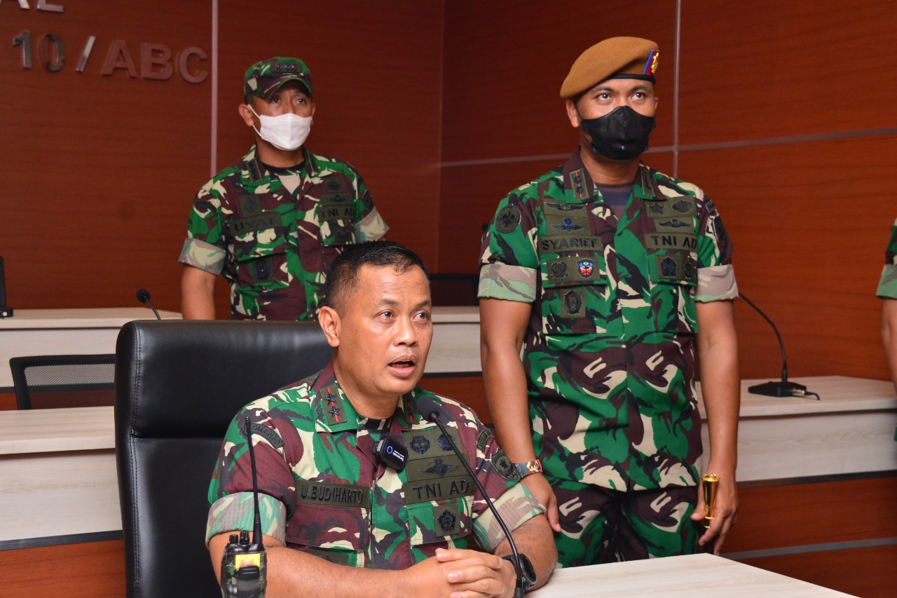 Pangdam Jaya/Jayakarta juga mengecek situasi dan kondisi prajurit Gagak Hitam yang melaksanakan pengamanan Covid-19 di Wisma Atlet Kemayoran dan lokasi isolasi terpadu (isoter) di Pasar Rumput Via Teleconference (Zoom Meeting) diruang Puskodal Gagak Hitam.