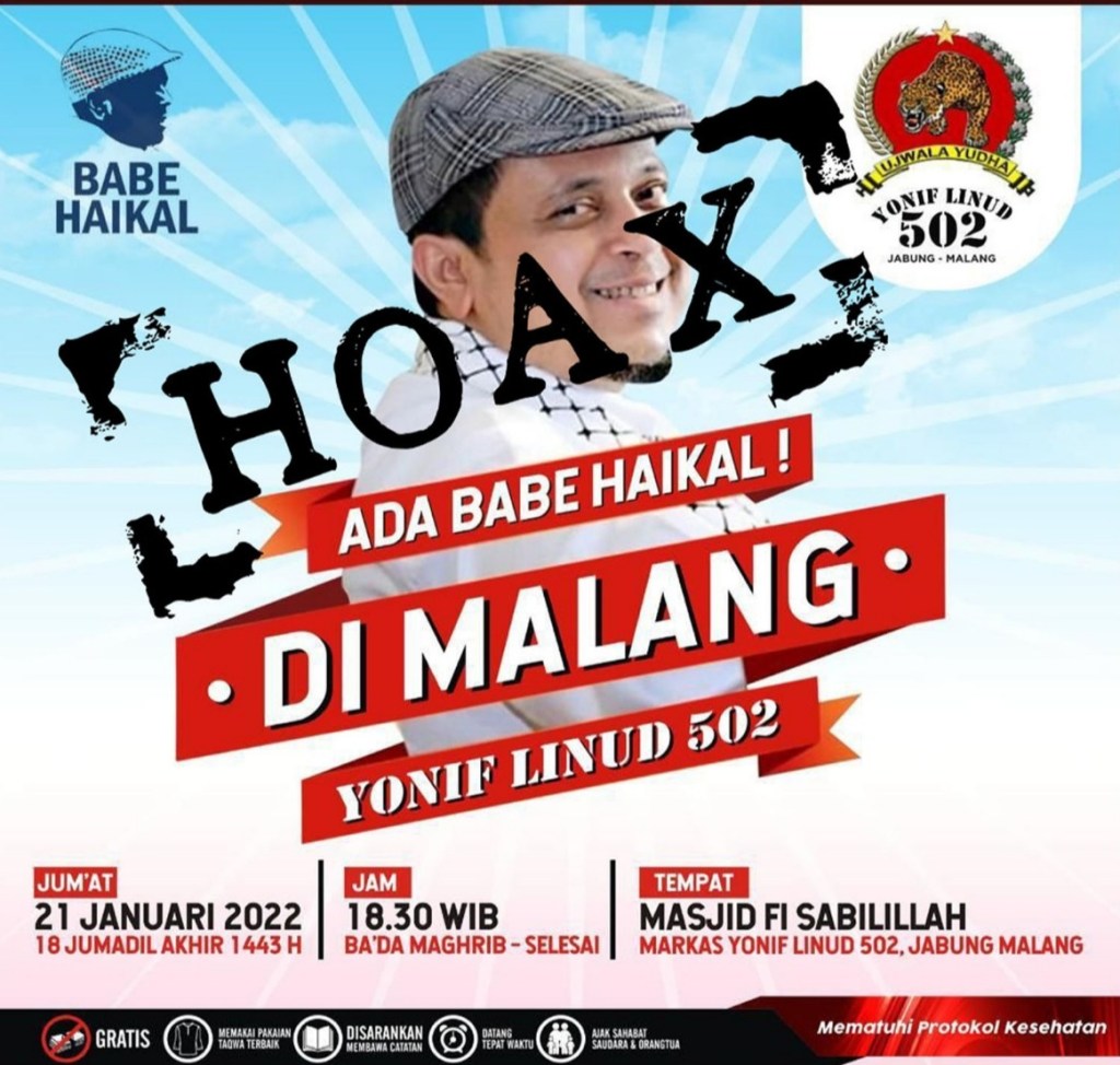 Terkait adanya rencana ceramah yang akan digelar oleh Ustadz Haikal Hasan di Malang, sebelumnya beredar banner di media sosial yang bertuliskan bahwa ceramah Haikal Hasan akan digelar di Markas Yonif Linud 502 Malang.