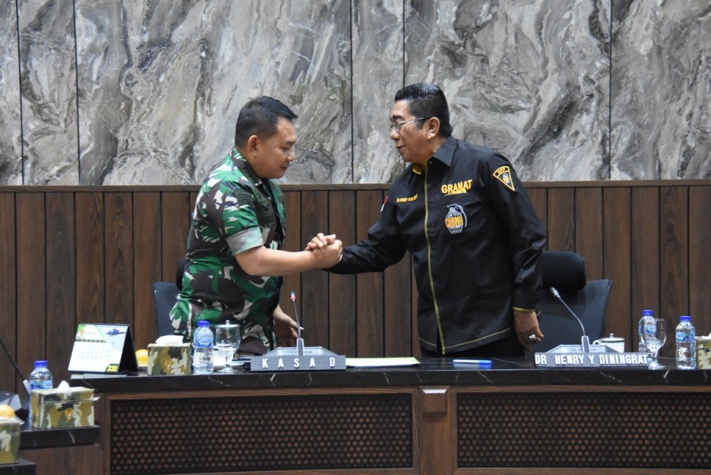 Kepala Staf Angkatan Darat (Kasad) Jenderal TNI Dudung Abdurachman, S.E., M.M., menerima Audiensi Ketua Umum DPP Organisasi Gerakan Anti Narkoba ( Granat) DR. H. KRH. Henry Yosodiningrat, S.H, M.H di Mabesad, Jumat (21/1/2022).