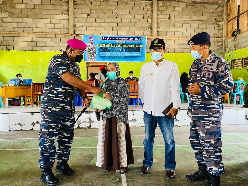 Serbuan vaksin oleh Pangkalan TNI AL Palu di gedung serbaguna desa Tompe Kecamatan Sirenja kabupaten donggala yang di hadiri pula pejabat desa Tompe berlangsung dengan lancar selama kurang lebih delapan jam hinggal selesai pukul 14.30 Wita.