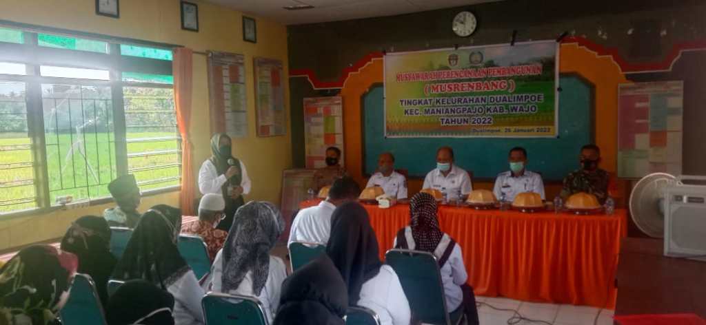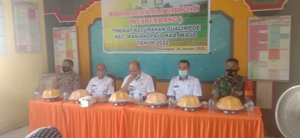 Hal ini dilakukan Bhabinkamtibmas Kelurahan Dualimpoe, Kecamatan Maniangpajo, Kab Wajo. Ipda Nasir Gading yang menghadiri Musyawarah Perencanaan Pembangunan (Musrenbang) Daerah tingkat kelurahan yang bertempat diKantor.lurah Dualimpoe.Kec Maniangpajo Kab Wajo. . Rabu (26/01/2022).