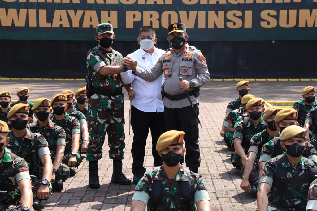 “Melalui apel ini pula, kita TNI-Polri di wilayah Sumatera Utara bersepakat untuk lebih memperkokoh kerja sama dalam segala bidang, termasuk penanganan pandemi Covid-19 dengan terus mengakselerasikan program vaksinasi dan penegakan Protokol Kesehatan, termasuk membantu upaya pemulihan ekonomi demi mengatasi berbagai kesulitan di tengah-tengah masyarakat,” jelas Pangdam.