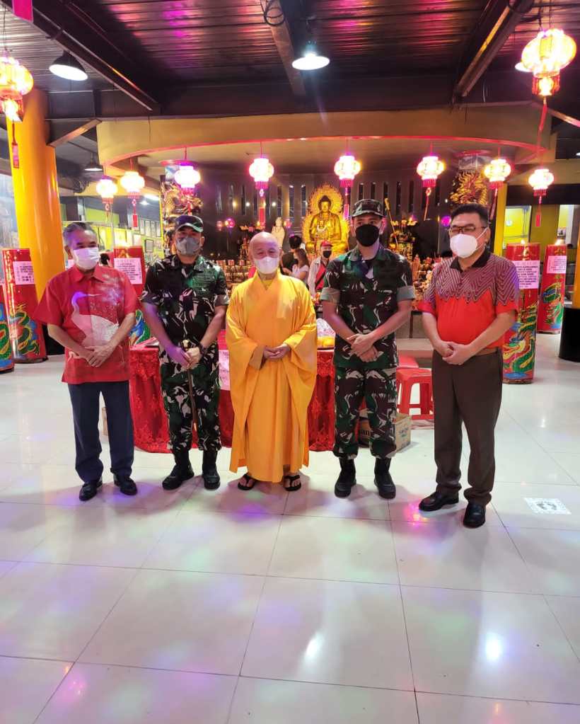 Dandim 0503/JB, Letkol Kav I Made Maha Yudhiksa.S.sos.MM yang di dampingi Danramil 01/Tamansari, Mayor Inf Zulkarnaen Galib sambangi beberapa vihara di wilayah Tamansari dalam rangka pengecekan pengamanan