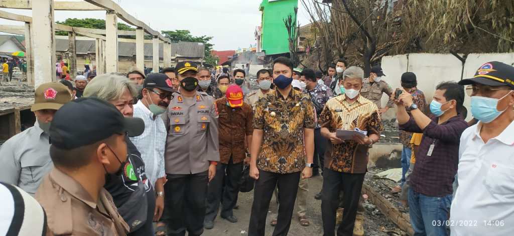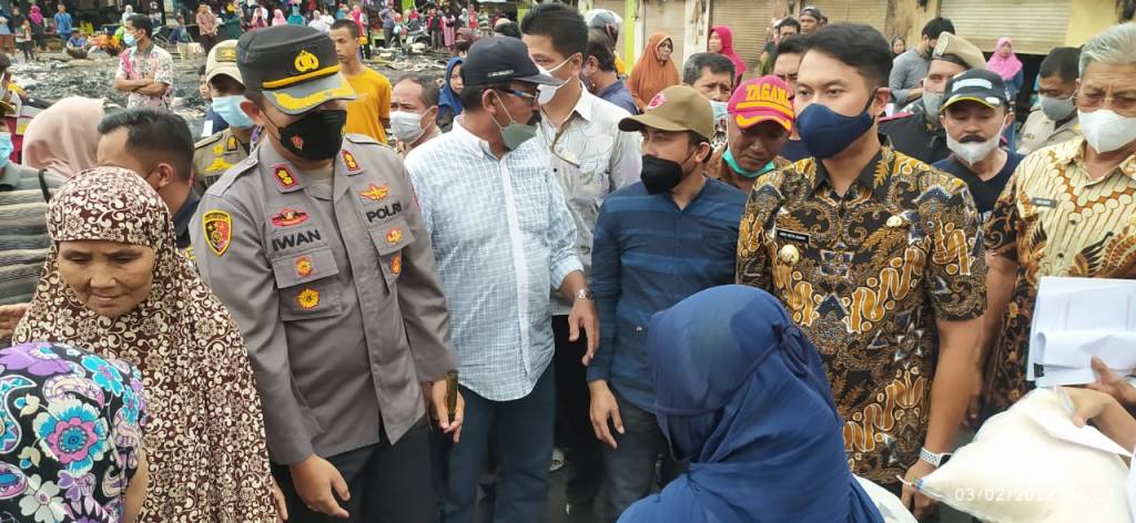 Kepala Kepolisian Resor Sinjai, Ajun Komisaris Besar Polisi (Akbp) Iwan Irmawan, S.Ik.,M.Si dampingi Bupati Sinjai Andi Seto Gadhista Asapa, SH.,LLM mengecek langsung lokasi kebakaran yang menghanguskan sejumlah kios barang campuran, warung, kios sayur mayur dan pasar ikan, dipasar Sentral, Kabupaten Sinjai. Kamis (3/2/2022).