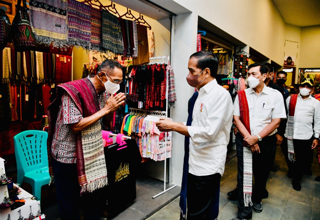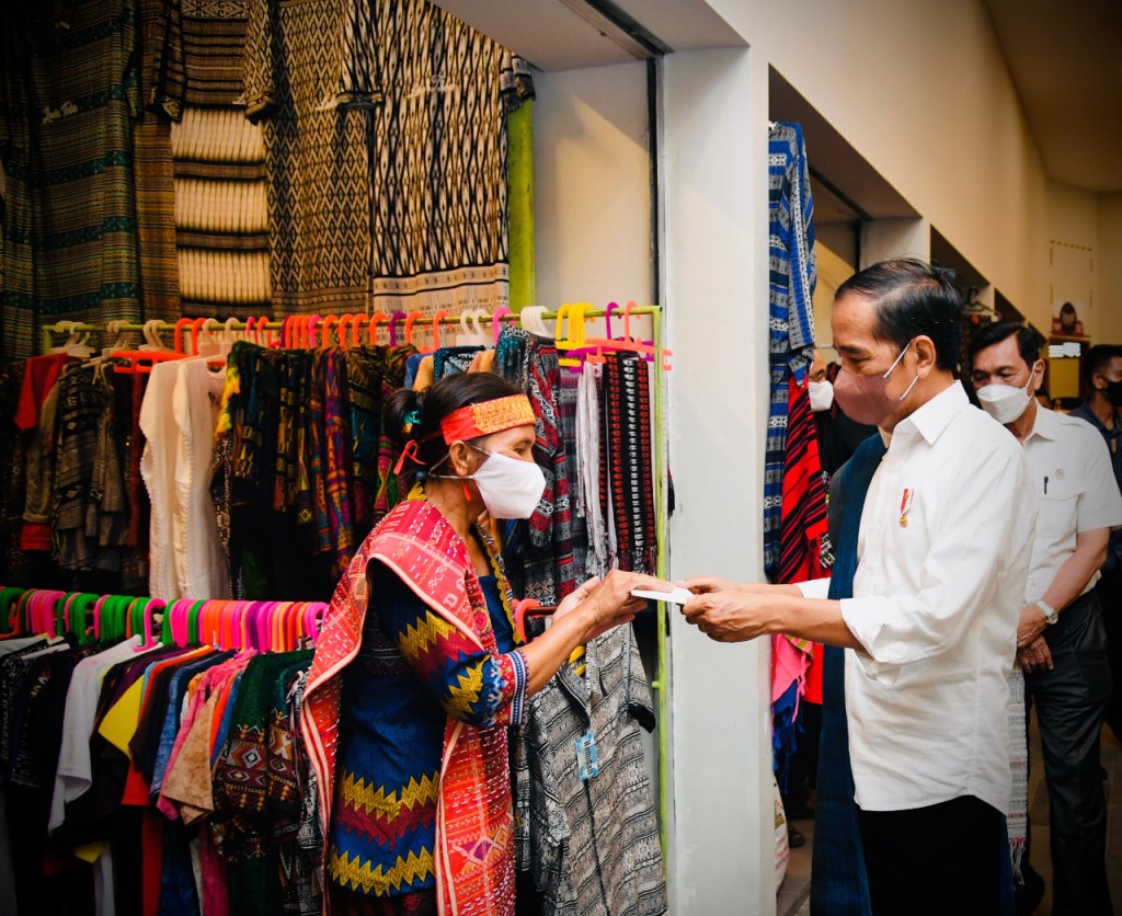 Dalam kesempatan tersebut, Presiden Jokowi turut menyerahkan bantuan langsung tunai kepada para pedagang kaki lima dan warung, pemberian cendera mata dan suvenir pada warga kawasan Huta Siallagan.