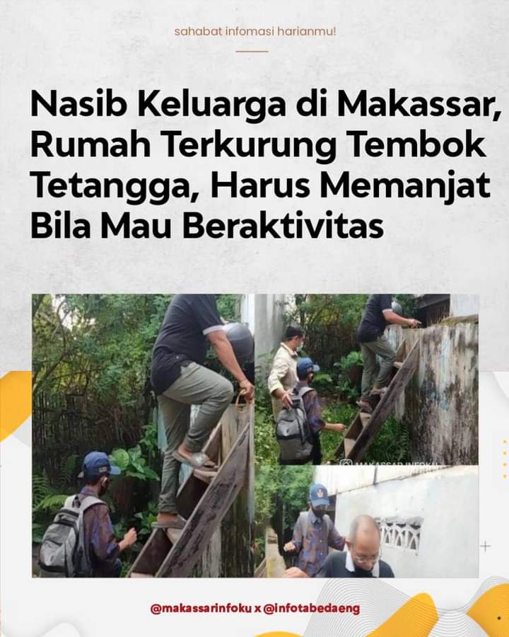 Diberitakan, dua rumah terkurung tembok tetangga di Jalan Toddopuli Raya Timur, Kelurahan Borong, Kecamatan Manggala, Kota Makassar.