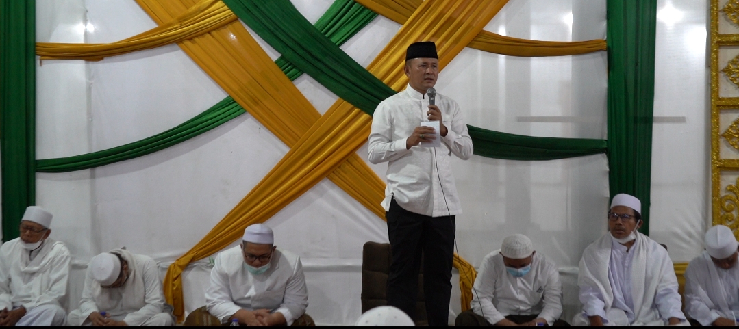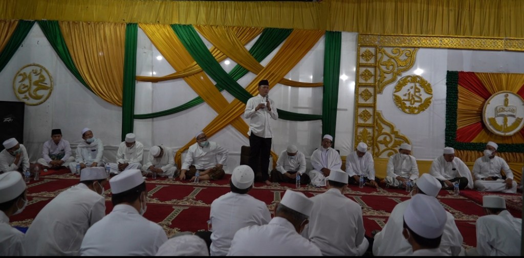 Danrem 061/Sk Brigjen TNI Achmad Fauzi S.I.P.,M.M. didampingi oleh Kasdim 0621/Kab. Bogor, Mayor Cba Ujang Rohmat serta Danr amil Cibinong, Kapten Kav. La Ahmadin menghadiri malam Manaqiban Syech Abdul Qadir AL Jaelani RA di Pondok Pesantren Roudhoh Al Hikam Jln Tegar Beriman No 12 Pakansari Cibinobng, Kabupaten Bogor. Sabtu (5/2).