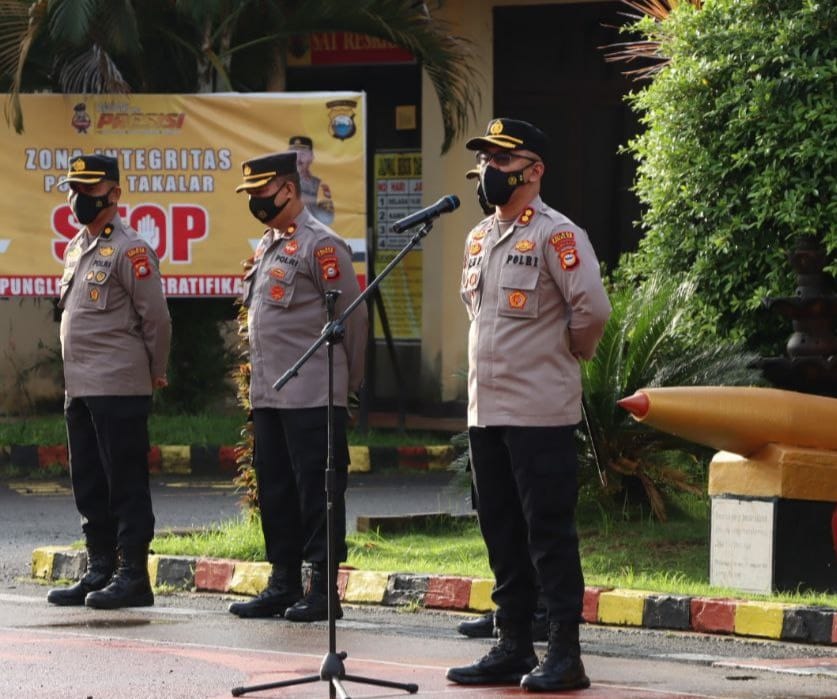 Kapolres Takalar AKBP Beny Murjayanto, S.I.K., M.H kembali mepimpin kegiatan apel pagi di halaman Mapolres Takalar, Senin (7/2/22).
