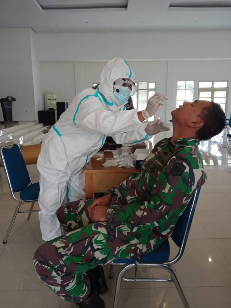 Personel BK Lanal Palu dengan tertua Pjs. Ka BK Lanal Palu Letda Laut (K/W) dr. Wira Nirwana bersama delapan orang personel kesehatan melaksanakan swab antigen kepada kepada seluruh prajurit Lanal Palu berjalan dengan lancar.