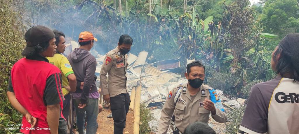 Personel Polsek Alla dipimpin Kanit Provos Polsek Alla Aiptu Asfin bersama Ka SPKT I Bripka Erwin Galang mendatangi Tkp Kebakaran Rumah warga di Dusun Katonan Padang Desa Buntu Sarong Kecamatan Masalle Kabupaten Enrekang, rumah tersebut diketahui milik seorang atas nama Yunus Umur 40 tahun. Selasa (08/02/2022).