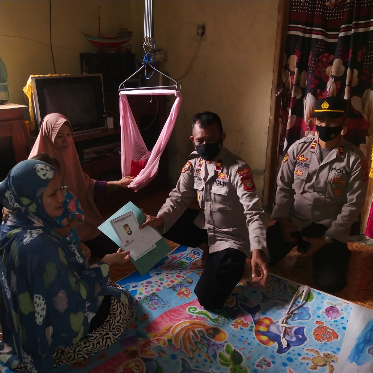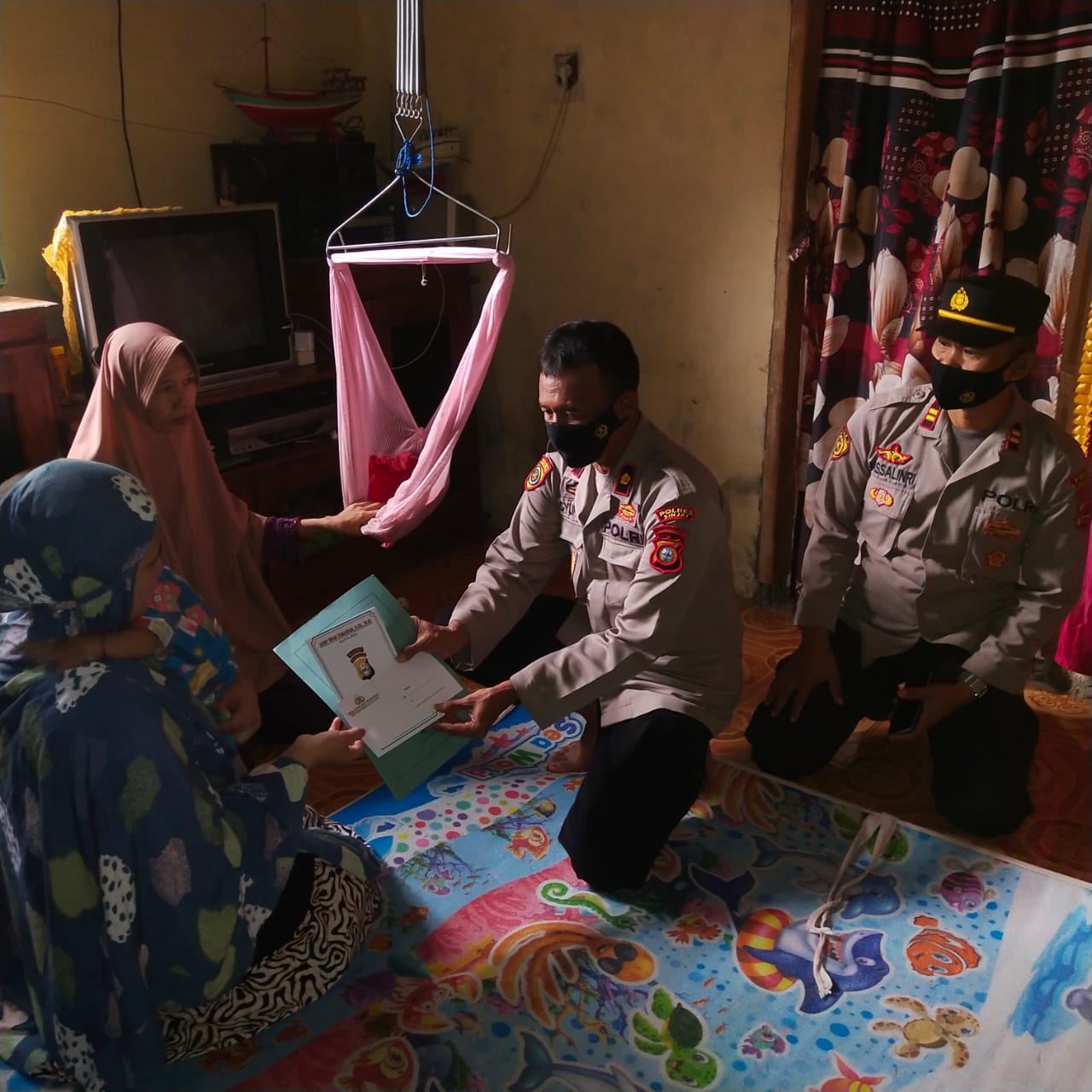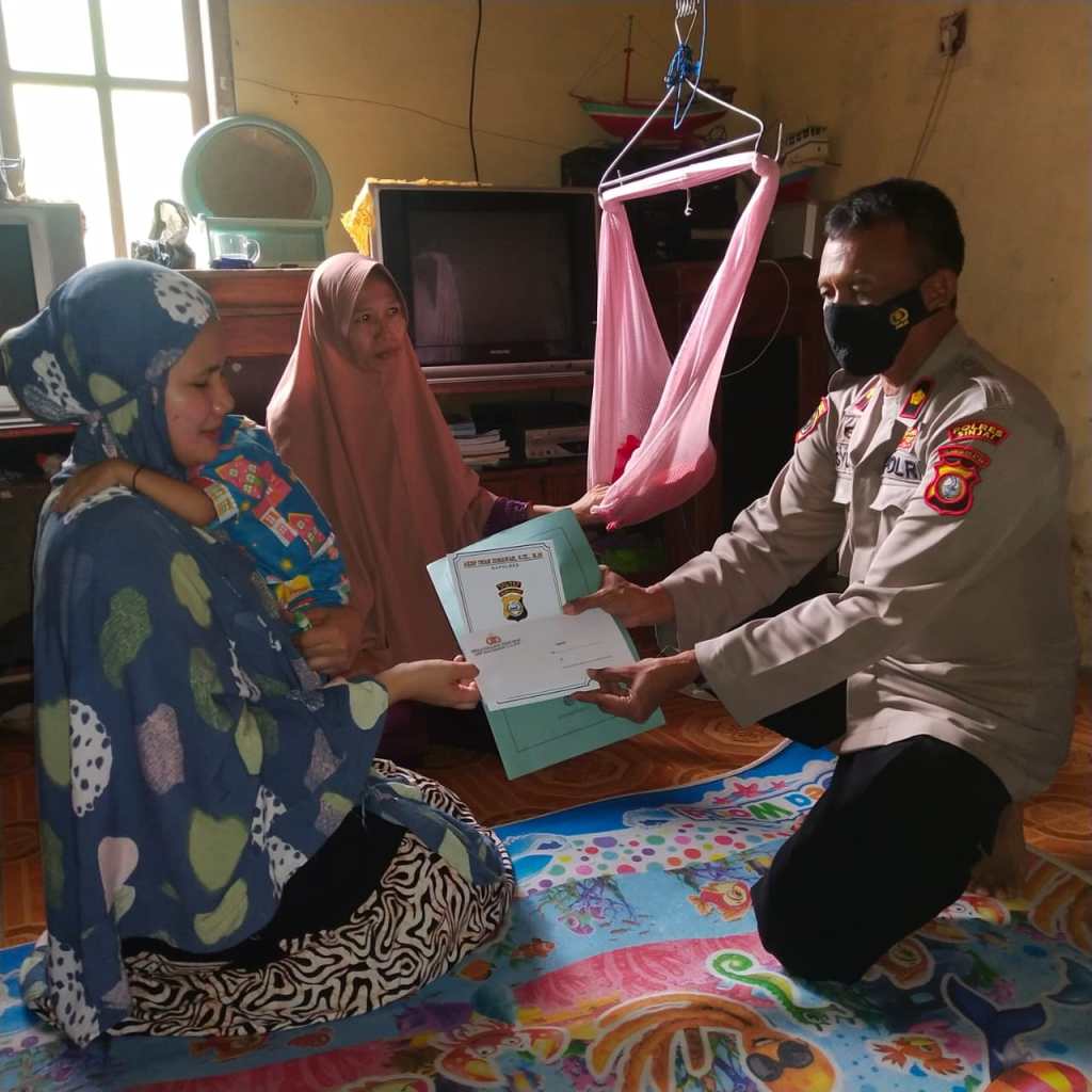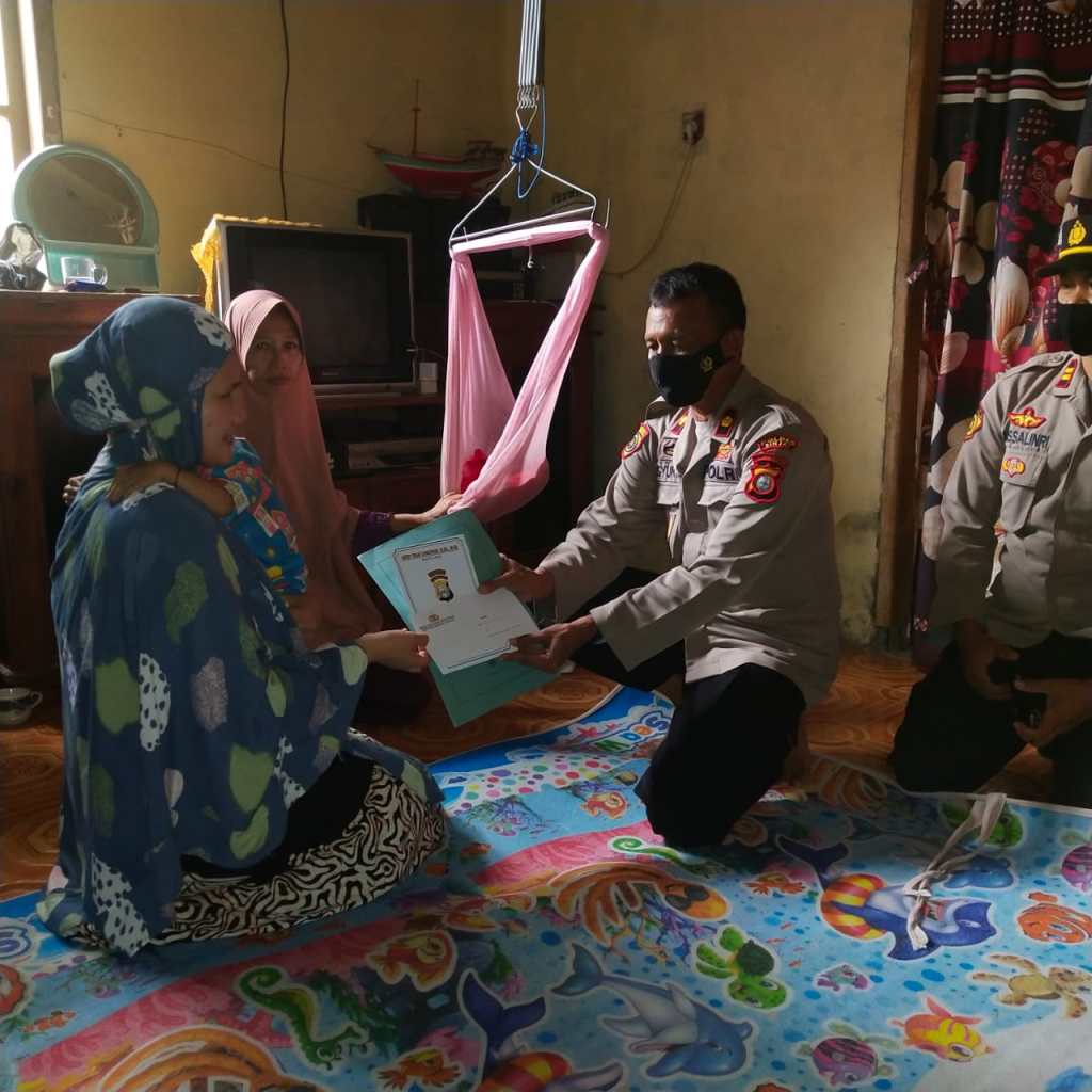 Usai menyerahkan bantuan, Kabag SDM Polres Sinjai berdialog dengan ayah dari anak tersebut bapak Ishak sambil menanyakan kondisi anak tersebut.