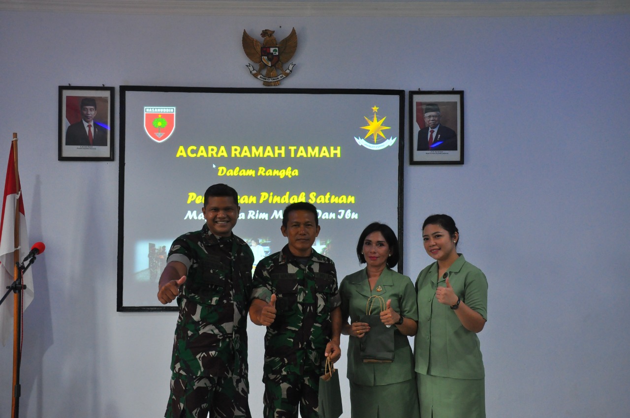 “Terimakasih dan penghargaan yang setinggi-tingginya kepada Mayor Cba Rim Madao beserta istri yang telah melaksanakan tugas di Denbekang ini kurang lebih 7 tahun, jaga hubungan baik dan silaturahmi yang telah terjalin selama ini dan tetap memelihara komunikasi walaupun nanti telah bertugas di tempat yang baru sebagai Kasi Tuud Bekangdam XIII/Merdeka, pesan perwira satu bunga”