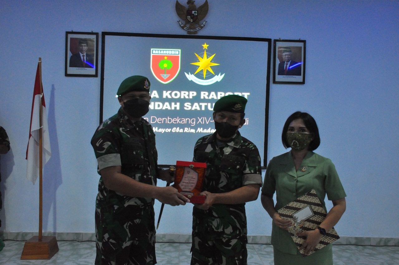 Selain melaksanakan laporan Korps satuan, juga di isi kegiatan ramah tamah berupa pesan dan kesan, pemberian cinderamata dan juga penghargaan baik dari Komandan Denbekang, Prajurit serta persit. Denbekang XIV-44-03/Kendari.
