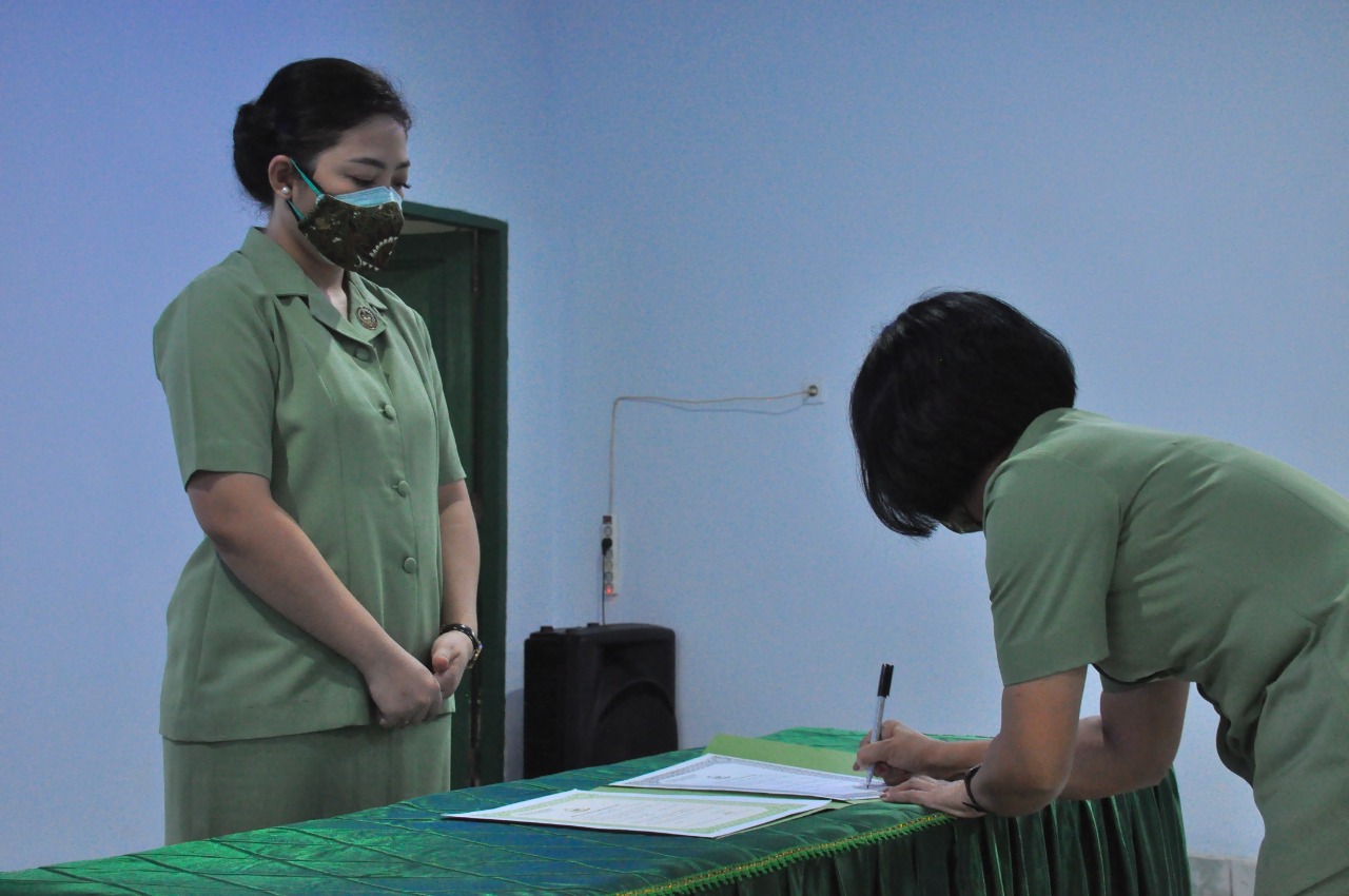 Komandan Denbekang XIV-44-03/Kendari Mayor Cba Hamonangan Simanjuntak S.E.,M.Si Pimpin acara pelepasan Wadan Denbekang pindah satuan di aula Denbekang XIV-44-03/Kendari, Senin (07/02/2022).