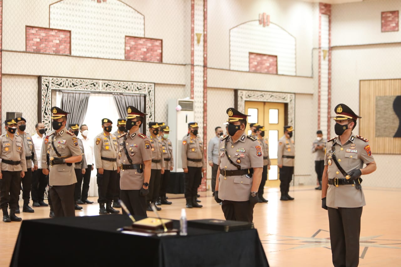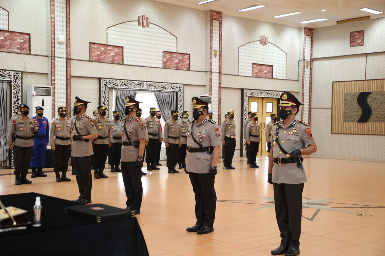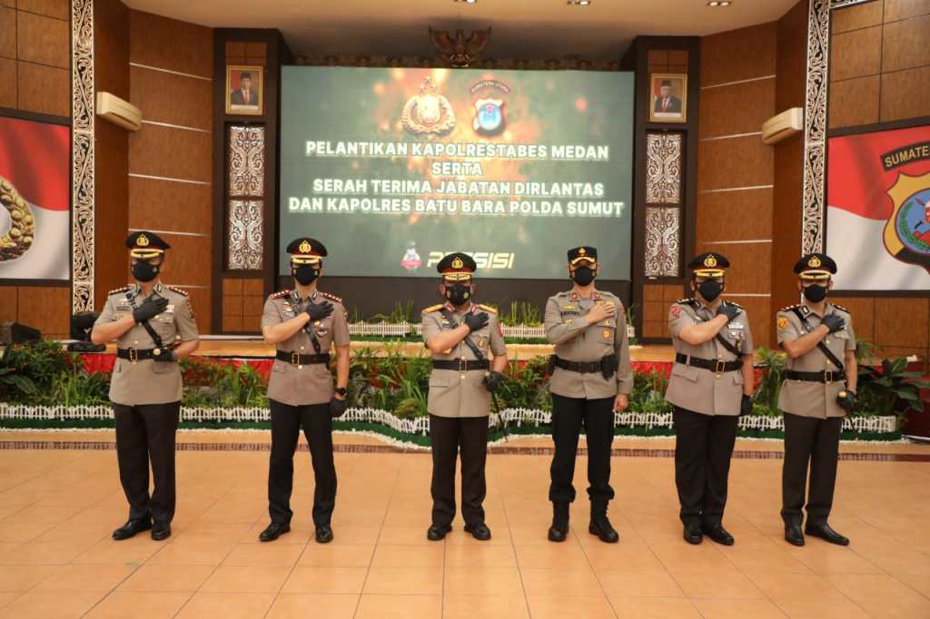 Kapolda Sumatra Utara Irjen Pol Drs. Panca Putra. S, M.Si serahterimakan jabatan (Sertijab) Kapolres Batu Bara di Aula Tribrata Mapoldasu, Selasa (8/2/22) petang.