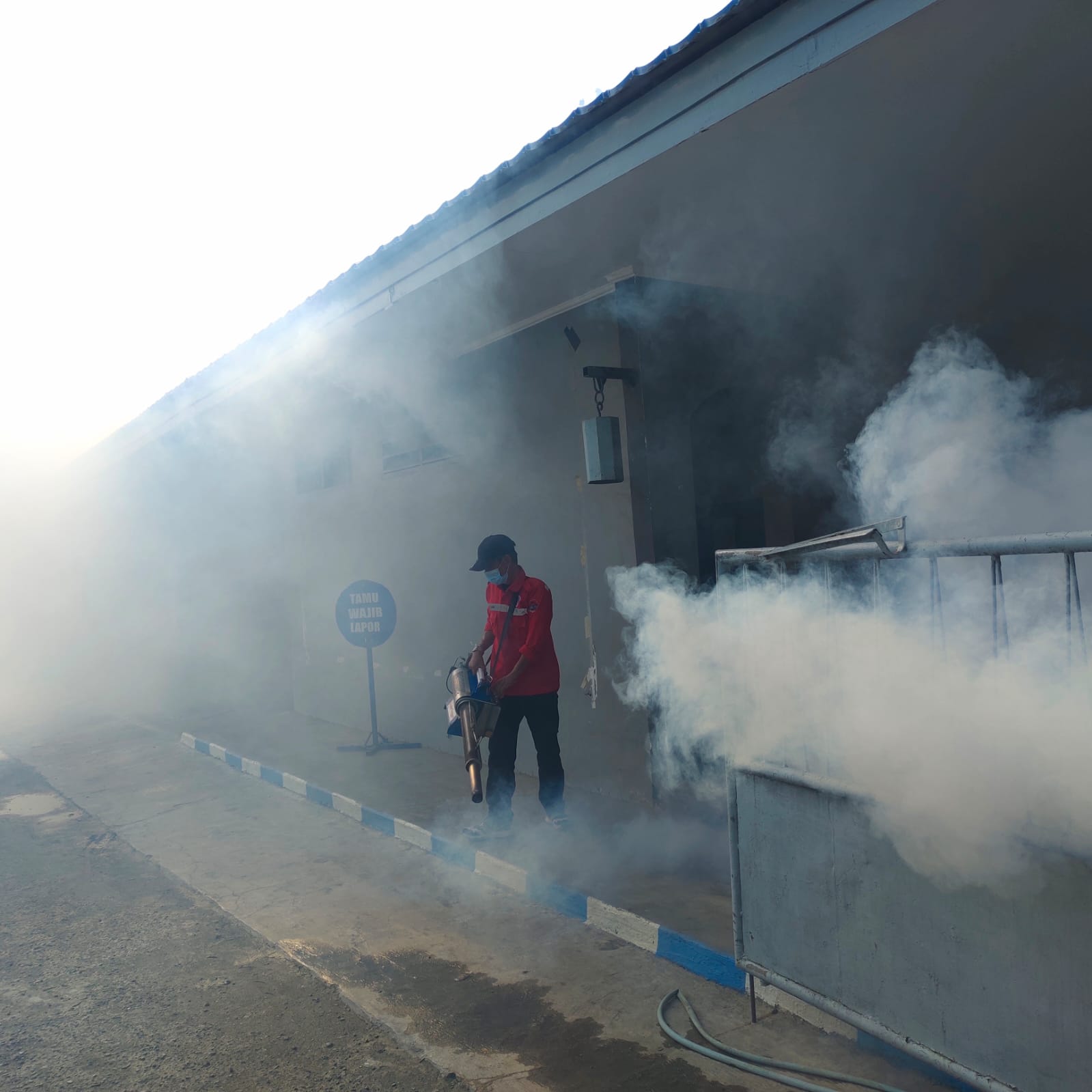 Indikasi meningkatnya kasus Dengue Fever (demam berdarah) di Komplek Rumdis TNI AL yang terletak di Jln. Yos Sudarso nomor 30 kota Palu menjadi bahan pertimbangan Komandan Lanal Palu Kolonel Marinir Marthin Luther, M. Tr. Hanla memerintahkan Balai Kesehatan (BK) Lanal Palu mengambil tindakan preventif melaksanakan Fogging (Penyemprotan Insektisida untuk membunuh nyamuk).