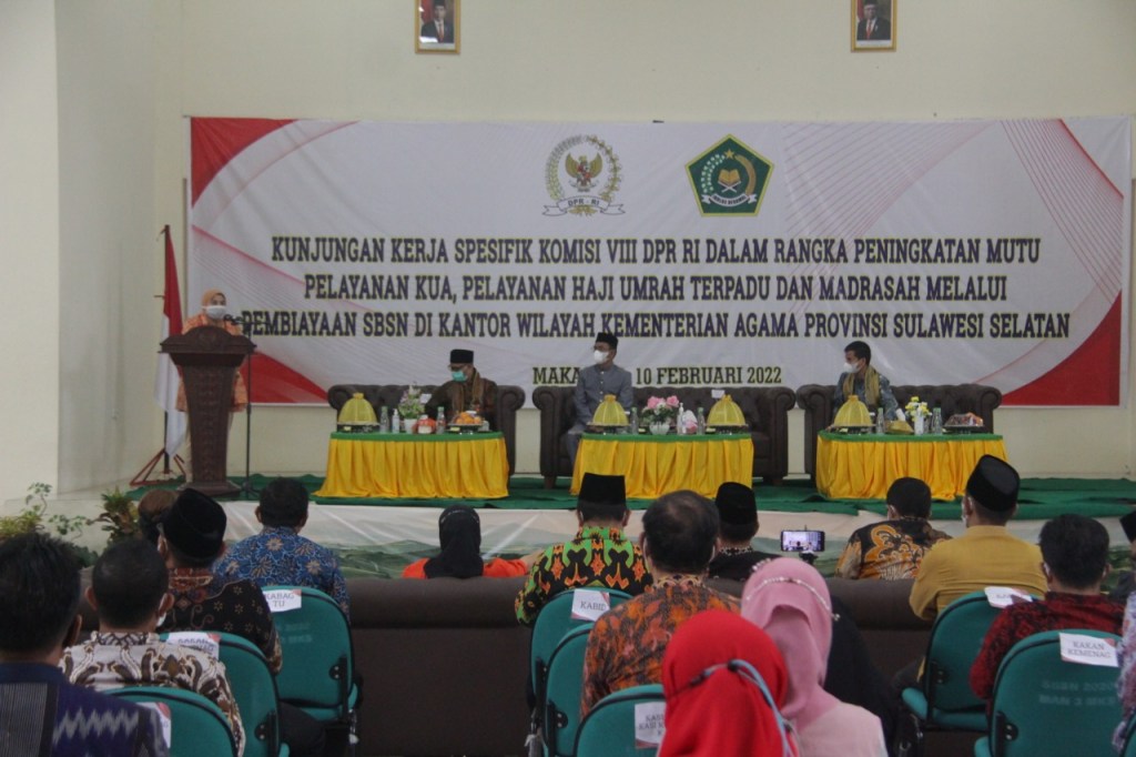 Memasuki Awal Februari 2022, Kanwil Kemenag Prov. Sulsel mendapatkan berkah dengan adanya Kunjungan Kerja Spesifik Komisi VIII DPR RI dalam Rangka Peningkatan Mutu Pelayanan KUA, Pelayanan Haji Umrah Terpadu dan Madrasah Melalui Pembiayaan (Surat Berharga Syariah Negara) SBSN.