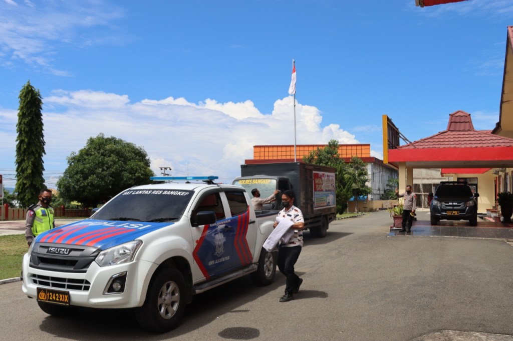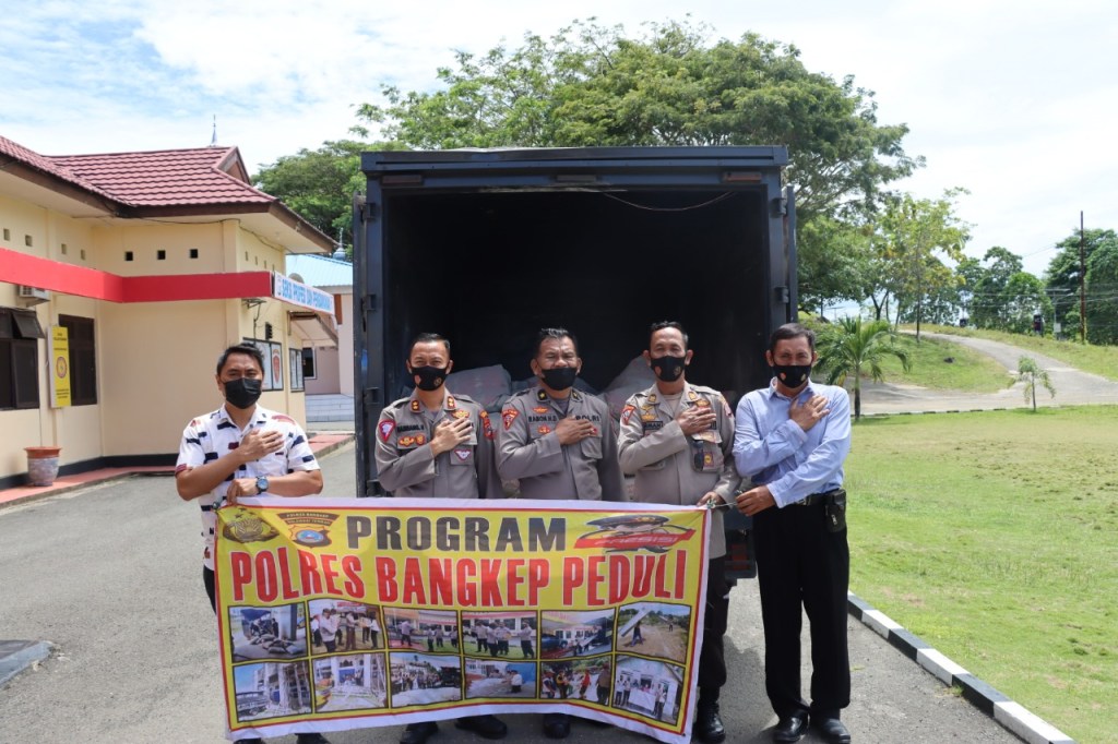Tim Polres Bangkep Peduli yang dipimpin oleh Akp Herman bersama anggota Ipda Muhamad Ruhil Newton Sugiarto, S.H dan Bripda Indra dilepas oleh Kapolres Bangkep Akbp Bambang Herkamto S.H di halaman Mako Polres Bangkep untuk membawa dan memberikan sumbangan semen sebanyak 60 (enam puluh ) sak di 3 ( tiga ) mesjid. Kamis (10/02/2022) jam 13.30 wita.