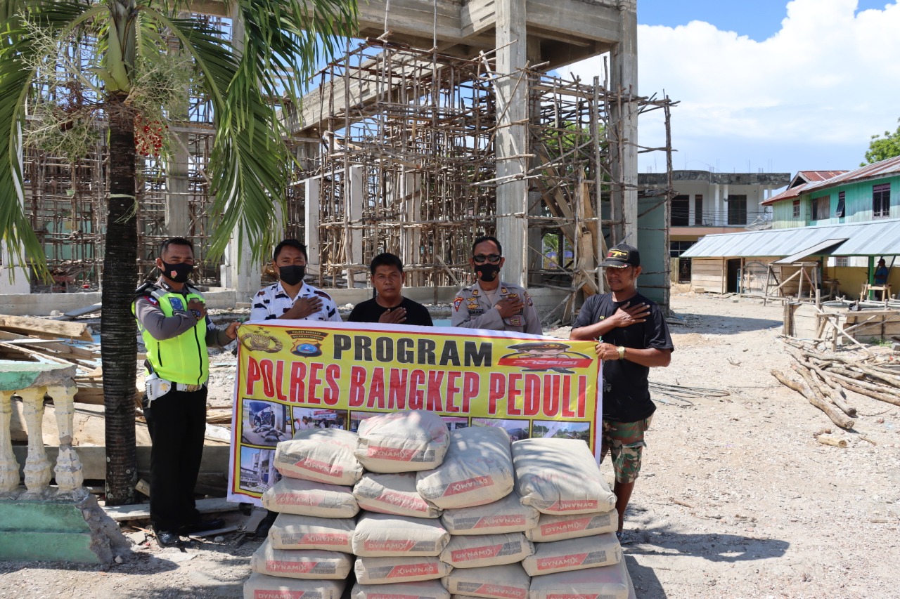 Giat Penyerahan Bantuan berupa 60 Sak Semen di serahkan langsung oleh Kasubbag Binops AKP Herman, KBO Sat Intelkam Ipda Muh. Ruhil Newton Sugiarto, SH dan Personil Polres Bangkep, dimana bantuan sumbangan Semen tersebut diantarkan sampai di depan tempat ibadah (Mesjid) dan Sumbangan Semen tersebut langsung diterima oleh Pengurus Mesjid bersama beberapa orang perwakilan masyarakat dan Jamaah Mesjid.