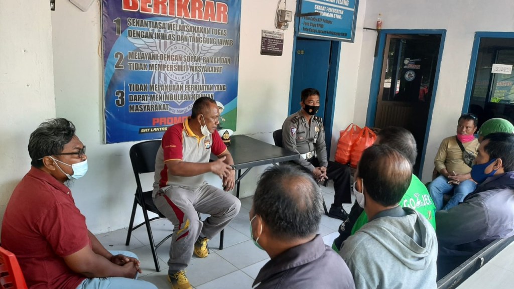Satuan lalulintas (Satlantas) Enrekang memberikan sosialisasi tertib berlalu lintas, kepada para tukang ojek yang diundang Ke Pos Lalulintas Polres Enrekang di Jalan Sultan Hasanuddin, Kecamatan Enrekang, Kabupaten Enrekang, Jumat (11/02/2022).