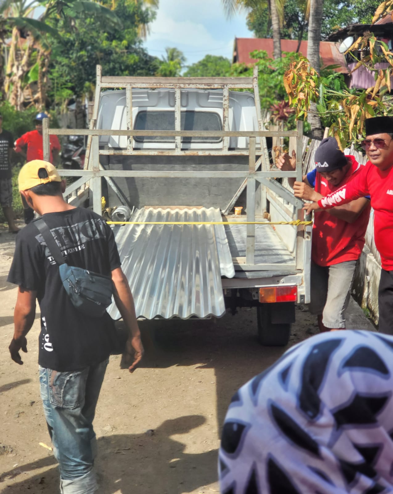 Korban kebakaran satu keluarga yang desa wanio wattang dusun polewali kec panca lautang kab sidrap mendapat bantuan dari Armin community berupa seng pada jum ‘at 11/2