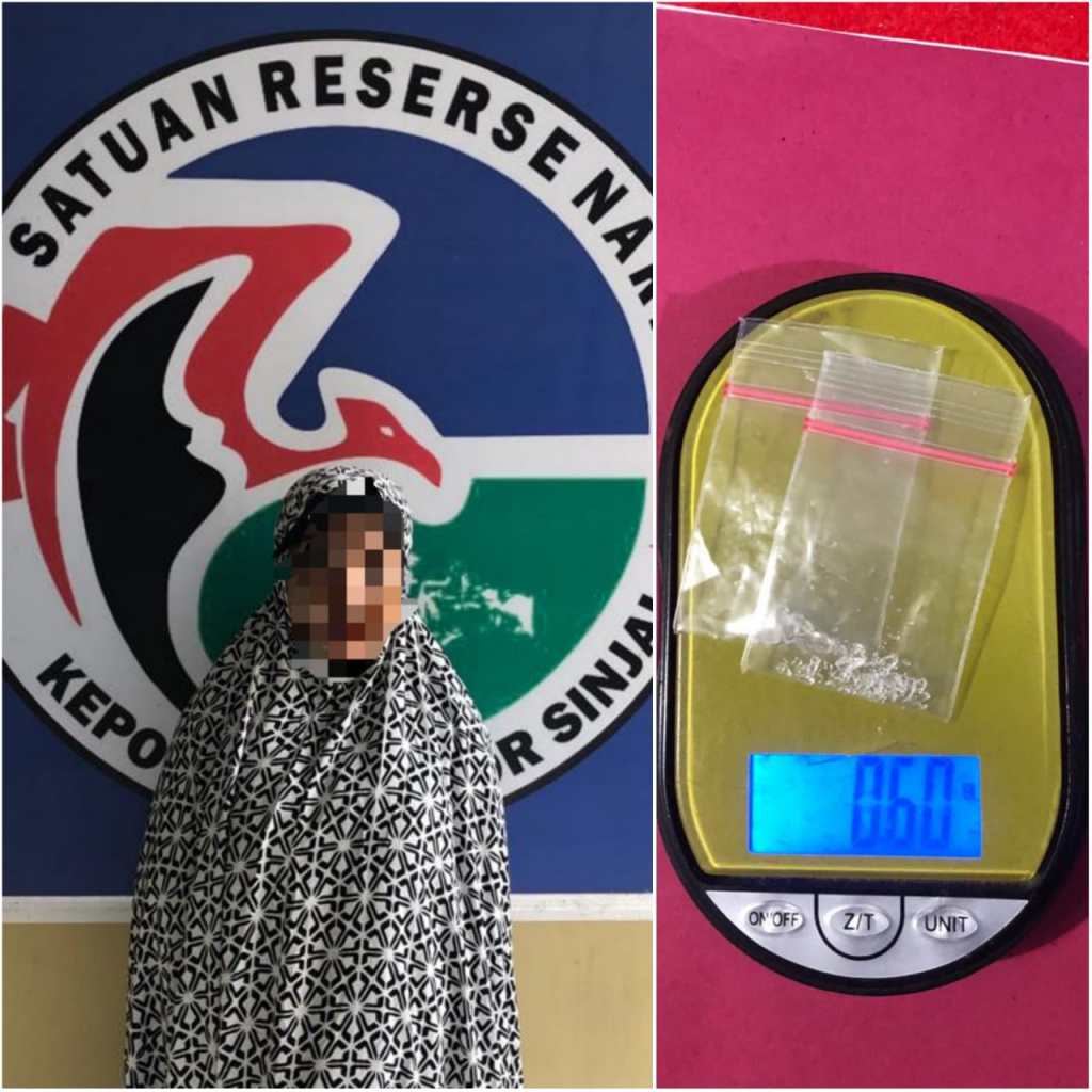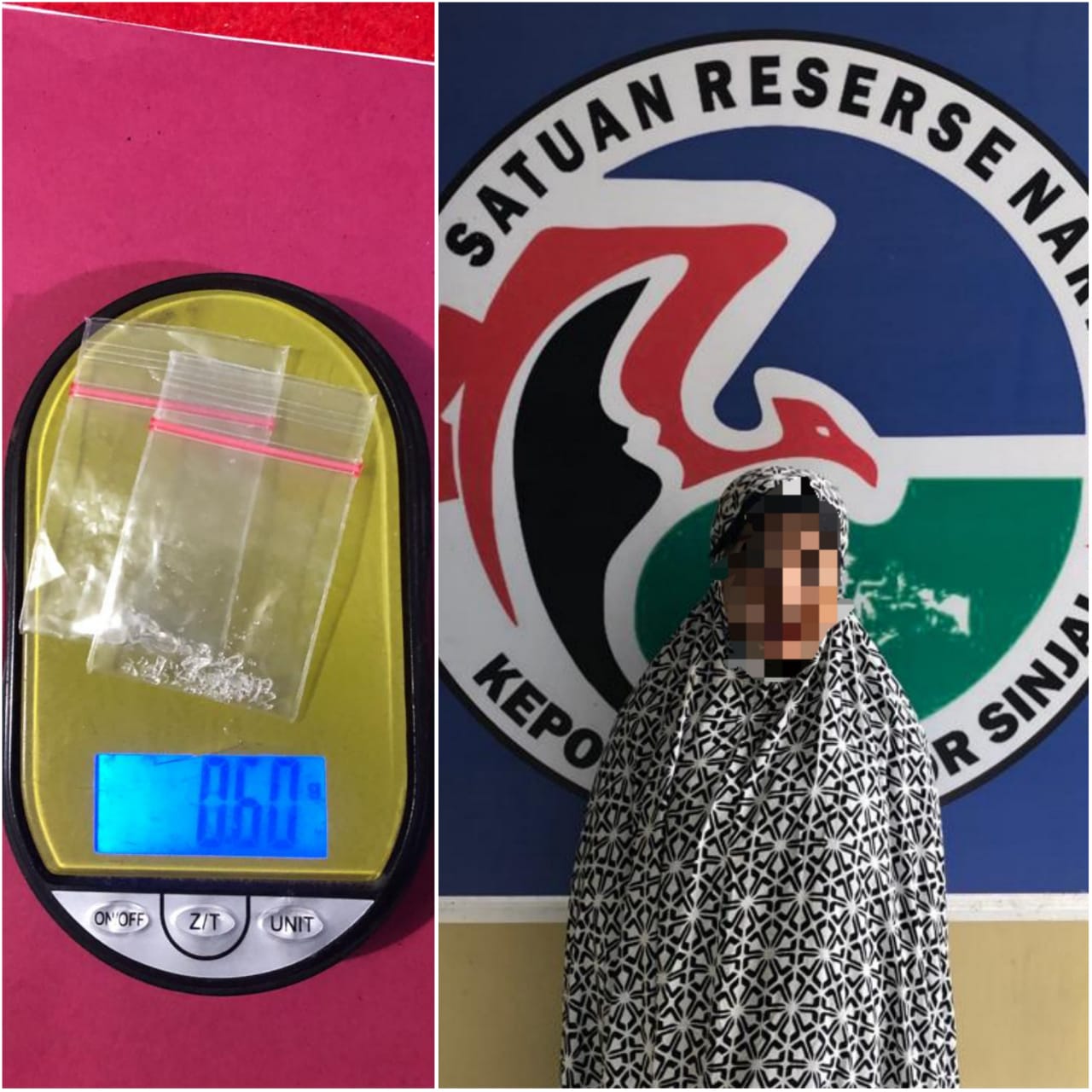 Dalam penangkapan tersebut juga mengamankan barang buktinya berupa 2 (dua) sachet plastik bening yang diduga berisi narkotika jenis Sabu terbungkus tissue dengan berat 0,60 gram.